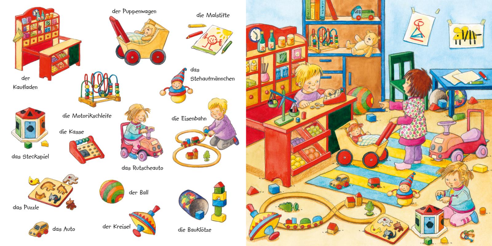 So viele spannende Dinge rund um den frühen Kinderalltag sind hier benannt. Bekanntes können die Kleinen wiederentdecken und Neues können sie dazulernen. So macht Lernen Spaß!