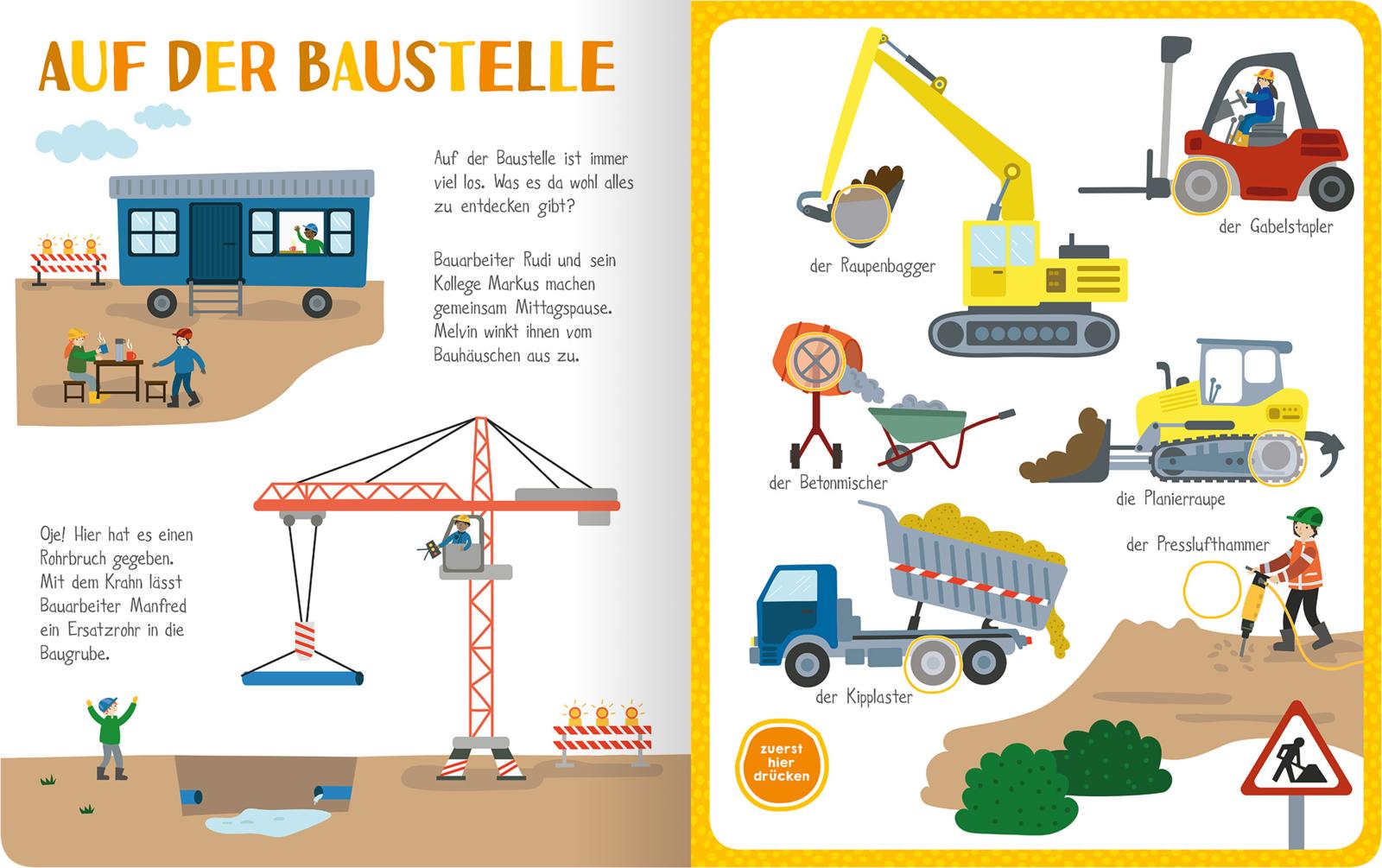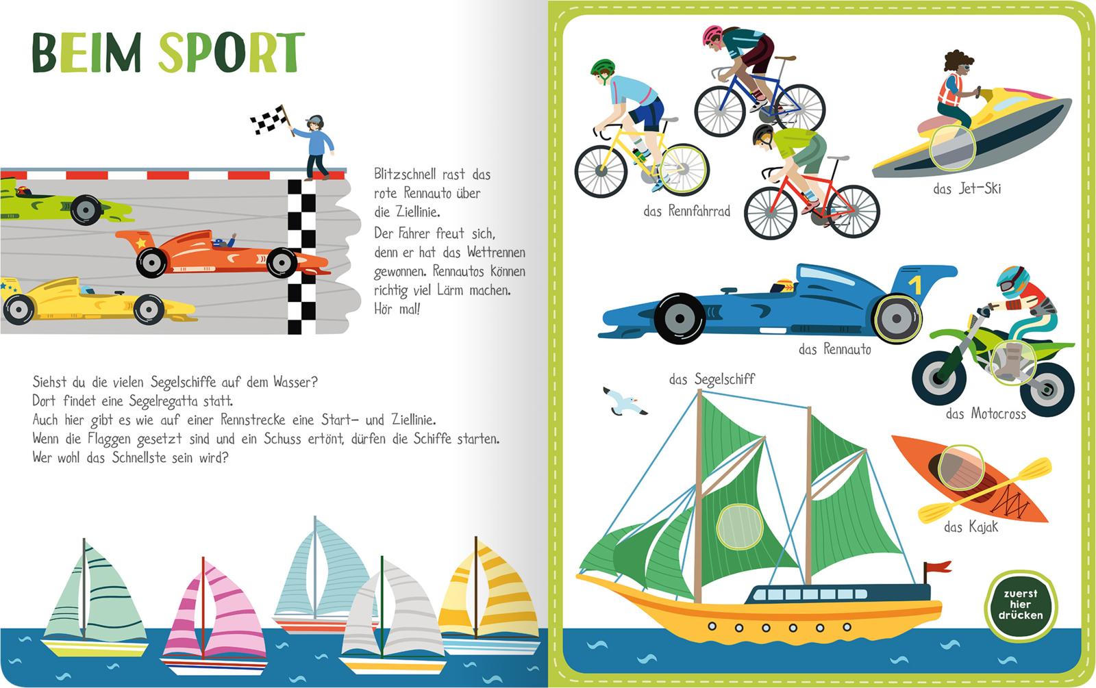 • Selbst aktiv werden: Das lustige Mitmachbuch lädt Kinder ab 24 Monaten dazu ein, auf Knopfdruck die Geräusche ihrer Lieblingsfahrzeuge auszulösen.