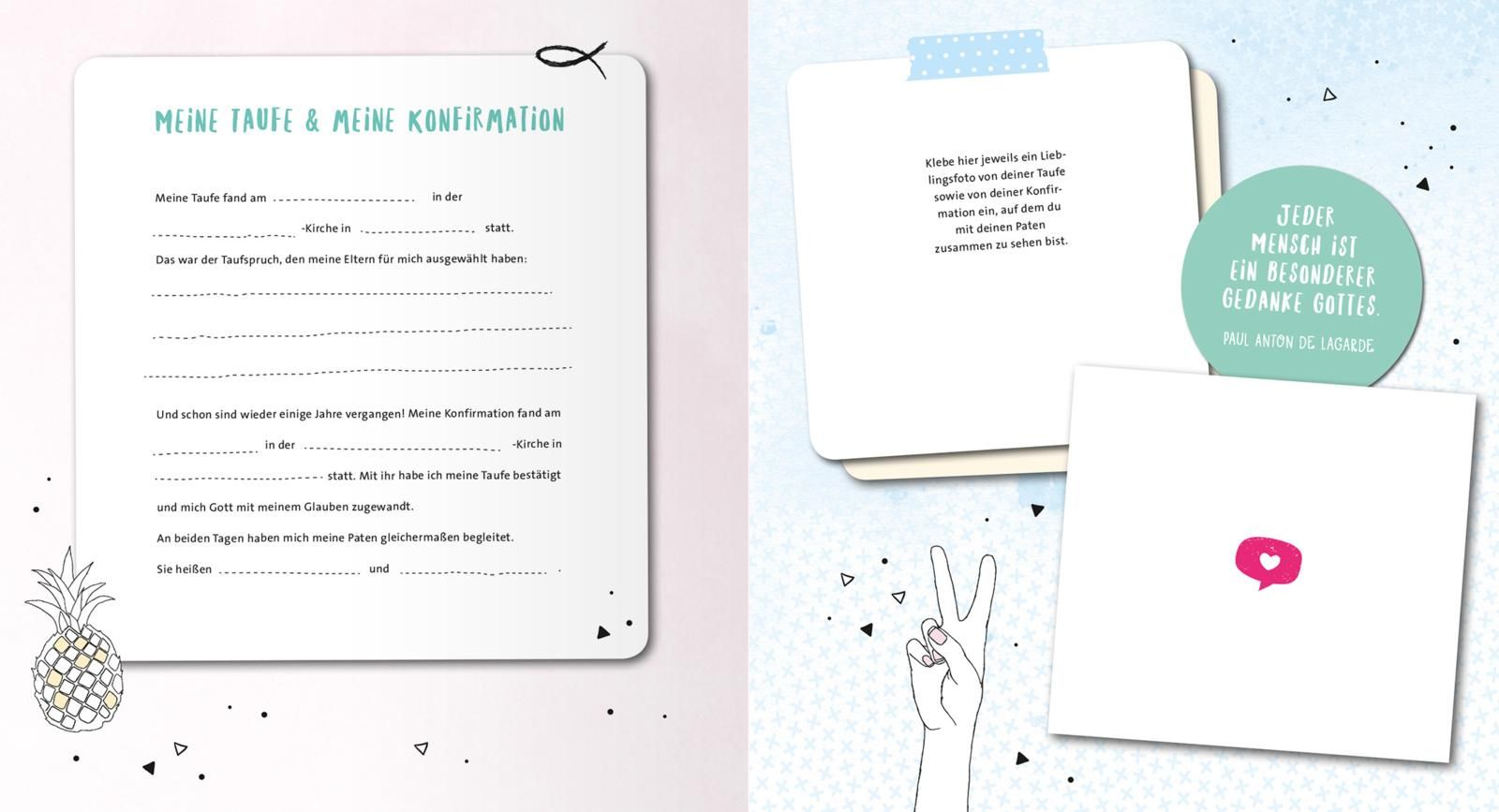 Dieses Konfirmationsalbum bietet neben viel Platz für Fotos zahlreiche Möglichkeiten zum Eintragen, um die persönlichen Erinnerungen an die Vorbereitungszeit, den Gottesdienst und die Feier der Konfirmation festzuhalten. Durch die moderne, freche Gestaltung und die zeitgemäßen Texte ist es ein ideales Geschenk für junge Konfirmandinnen an ihrer Konfirmationsfeier. Mit dieser Geschenkidee für Mädchen schenkt man die Möglichkeit, einen wertvollen Erinnerungsschatz an diesen besonderen Festtag zu erstellen. Das junge Design lädt zum Eintragen von Gedanken und Wünschen sowie zum Aufbewahren von Fotos ein - so macht das Aufschreiben von Erinnerungen Spaß!