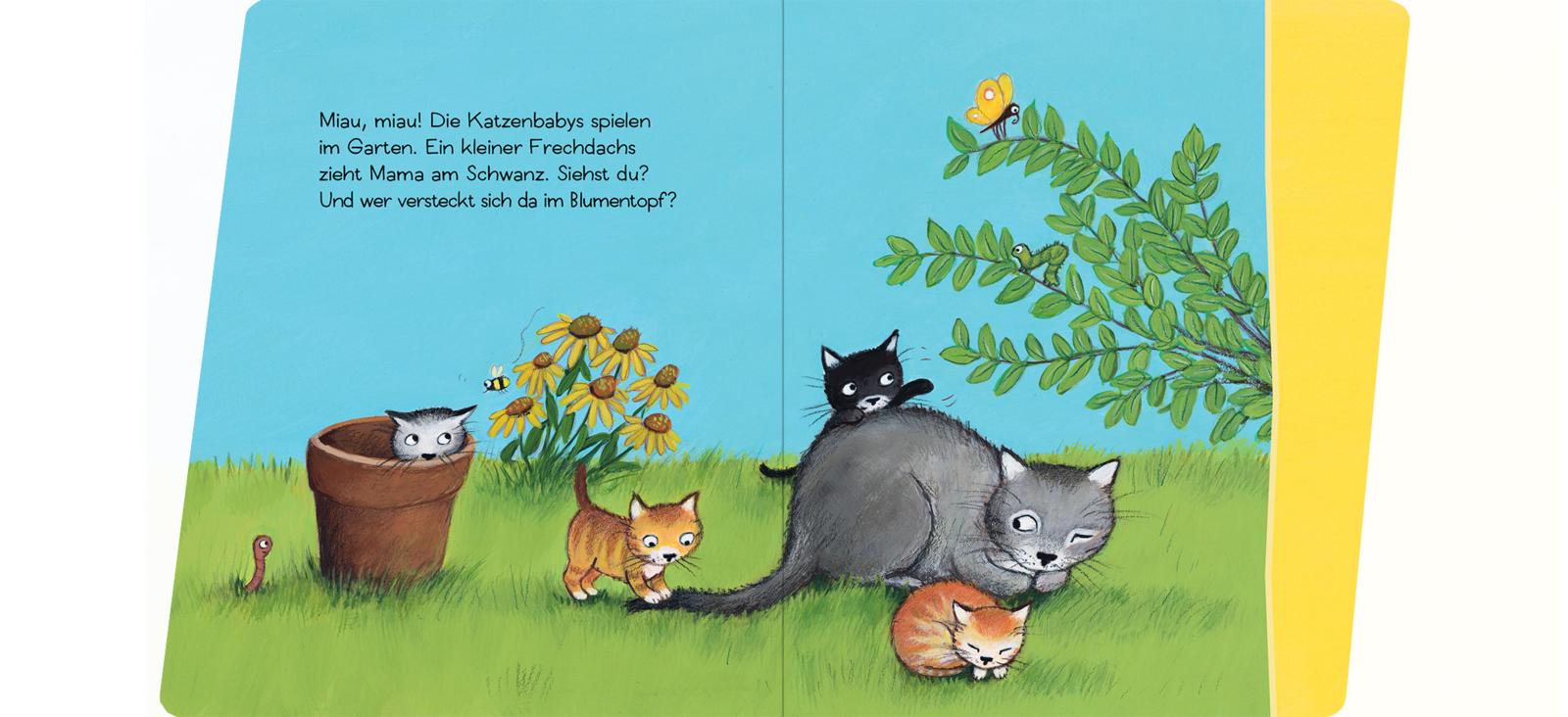Was machen die kleinen Katzen? Siehst du den großen Elefanten? Und wo spielen die Füchse? Dieses Pappebuch ab 6 Monaten garantiert einen Riesenspaß für kleine Tierfans. Der Clou dabei: Die Seiten werden immer größer und schließen mit kunterbunten, schrägen Rändern ab, sodass das eigenständige Blättern zum Kinderspiel wird.