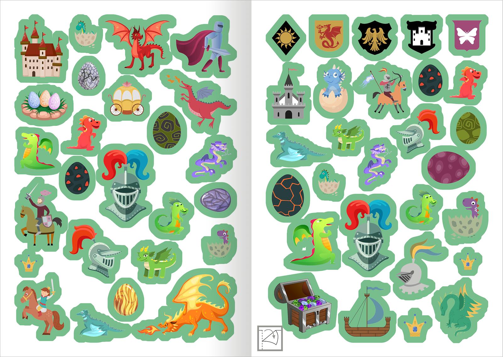 In diesem Heft findest du viele metallisch glitzernde Sticker rund um die Welt der Ritter und Drachen. Ob Turnierpferd, oder Drachenkind – hier findet jeder sein Lieblingsmotiv!