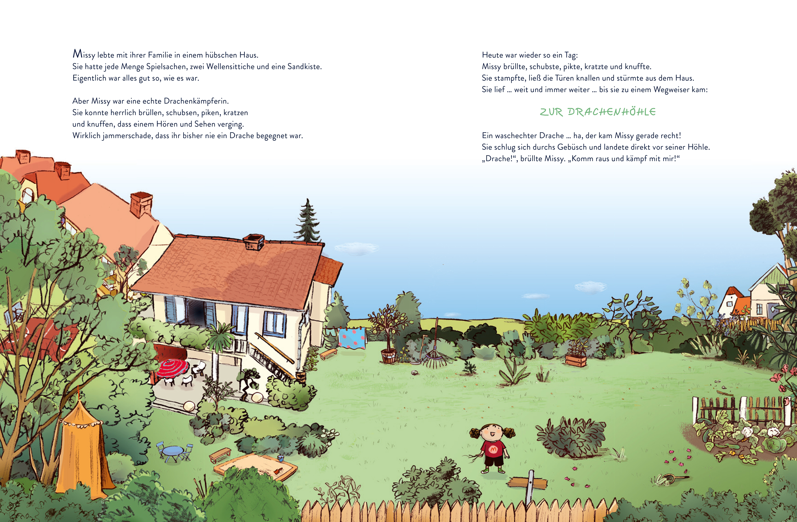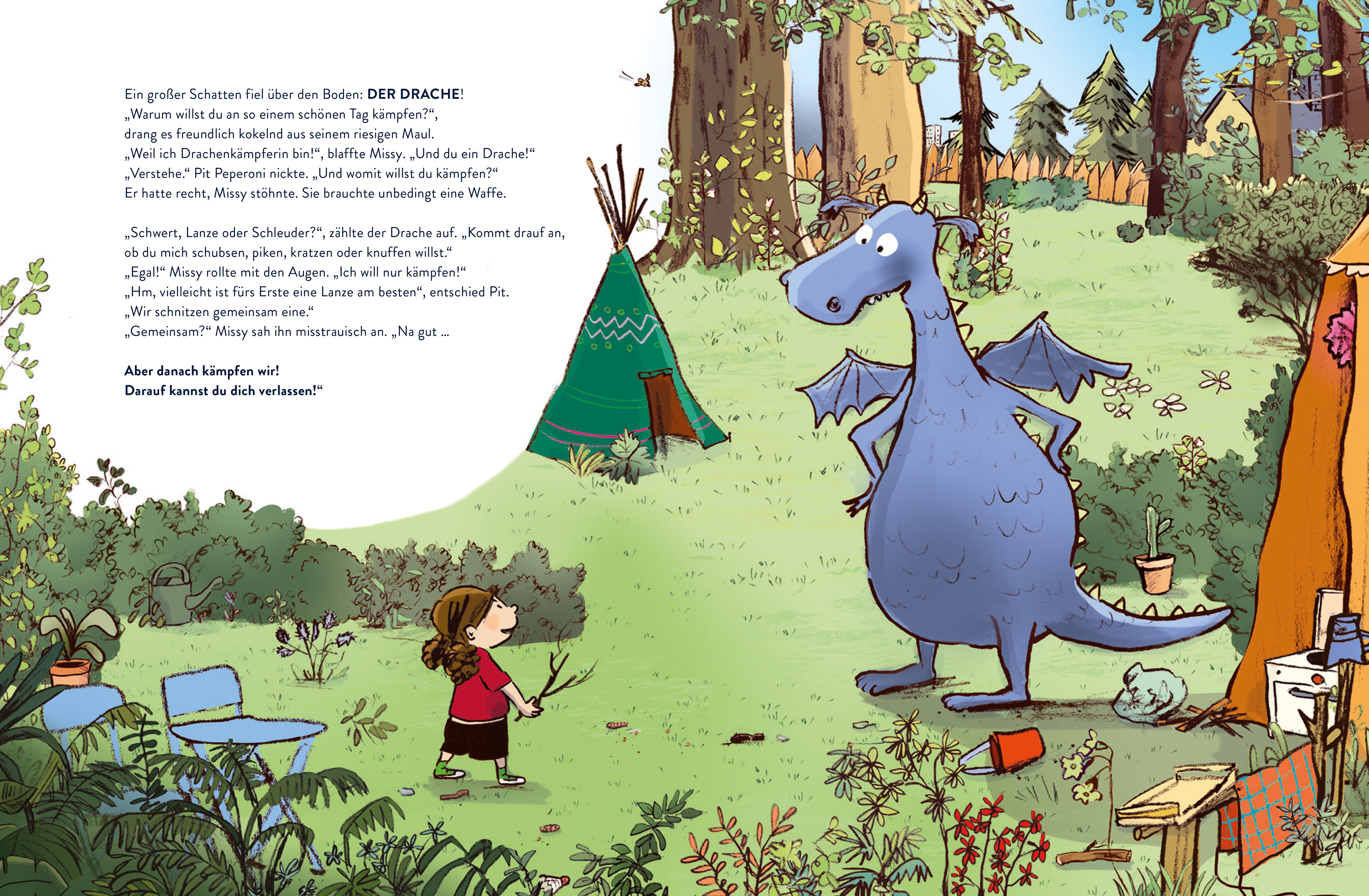 Missy ist eine echte Drachenkämpferin und herrlich gut im Brüllen, Schubsen, Piken und Knuffen! Jammerschade, dass ihr bisher noch nie ein richtiger Drache begegnet ist. Doch was ist das? Da wohnt ein echter Drache in ihrem Garten? Missy fordert ihn natürlich sofort heraus! Doch auf Kämpfen hat Drache Pit Peperoni gar keine Lust. Vielleicht will Missy ja mit ihm Kekse backen?
