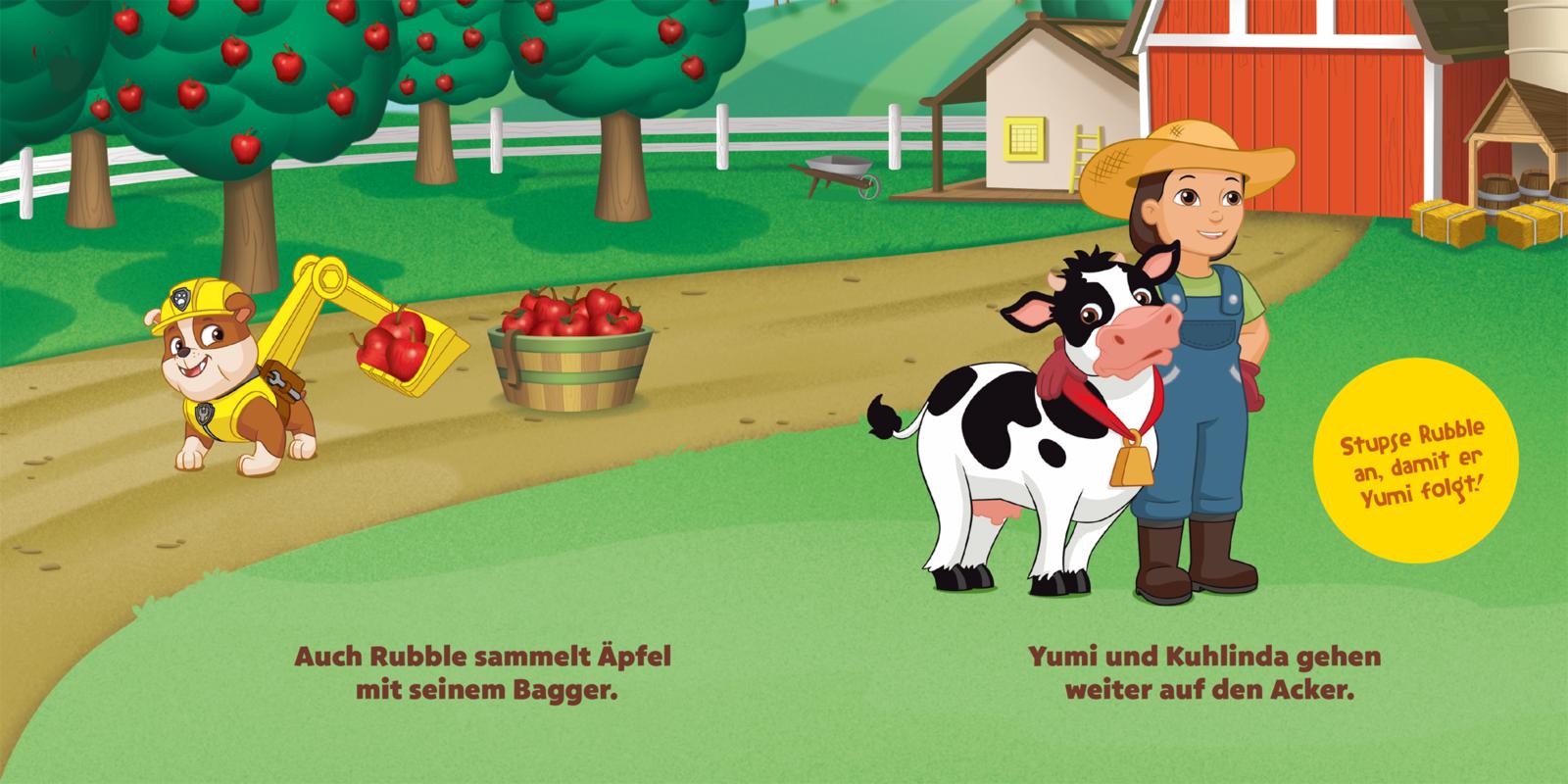 - Beschreibung Was hat Bäuerin Yumi auf ihrem Bauernhof alles zu tun?In diesem stabilen Pappenbuch für kleine Hände können Fans der PAW Patrol mit den heldenhaften Welpen einen Tag auf dem Bauernhof verbringen. Sie sammeln Äpfel, helfen im Stall und gießen den Acker. Liebevolle Reime führen durch die Geschichte und lustige Mitmach-Ideen binden Kinder ab 3 Jahren interaktiv in die Welt der Helfer auf vier Pfoten ein.Kein Einsatz zu groß, keine Pfote zu klein!