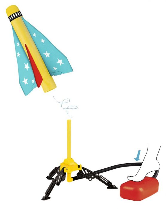 + 3 bunte, leichte Luftdruck-Rakete und 1 Abschussrampe samt Luftkissen