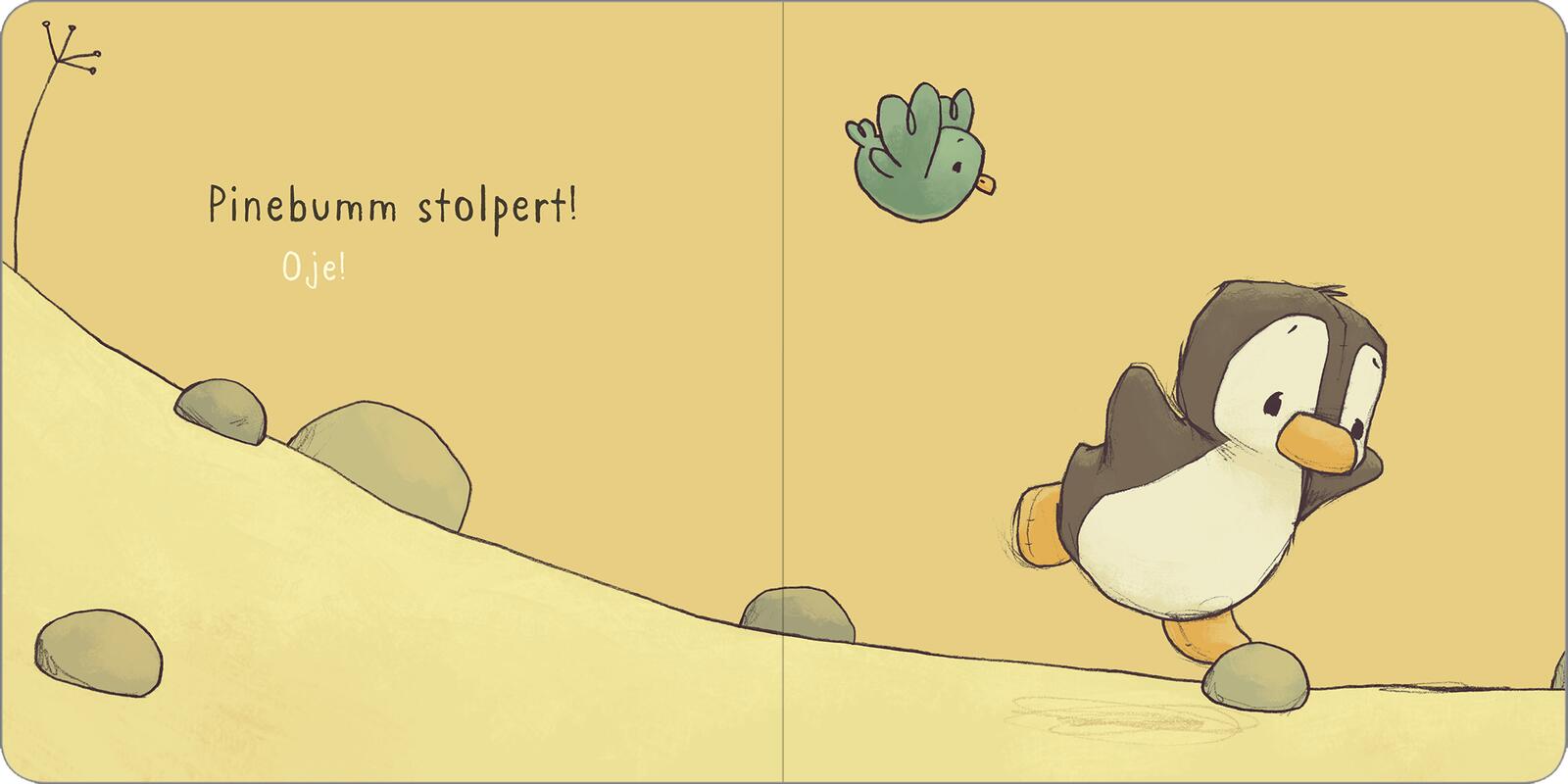 Pinebumm, der kleine Pinguin, ist hingefallen. Oje! Und was hilft dem kleinen Pinguin, seine Tränchen zu trocknen? Richtig - ein dicker Kuss von Anouk!