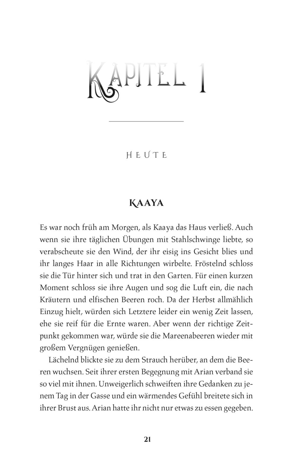 Kaaya hat keine Vergangenheit, keine Erinnerungen, keine Familie. Nichts außer Arian, der sie einst von den Straßen geholt und bei sich aufgenommen hat. Doch bevor sie ihrem besten Freund sagen kann, was sie wirklich für ihn empfindet, wird seine Seele von einem Schattenelfen gestohlen und er bleibt als Hülle zurück. Um ihn zu retten, reist die 18-Jährige ins Reich der Schatten, wo sie sich inmitten eines uralten Krieges wiederfindet. Das, was Kaaya dort über sich erfährt, bringt alles ins Wanken, an das sie bisher geglaubt hat. Sie muss erkennen, dass sie niemandem mehr vertrauen kann, nicht einmal sich selbst und ihren eigenen Gefühlen – gerade wenn es um den mysteriösen Kronprinzen Ilias geht, der seine ganz persönliche Mission verfolgt …
