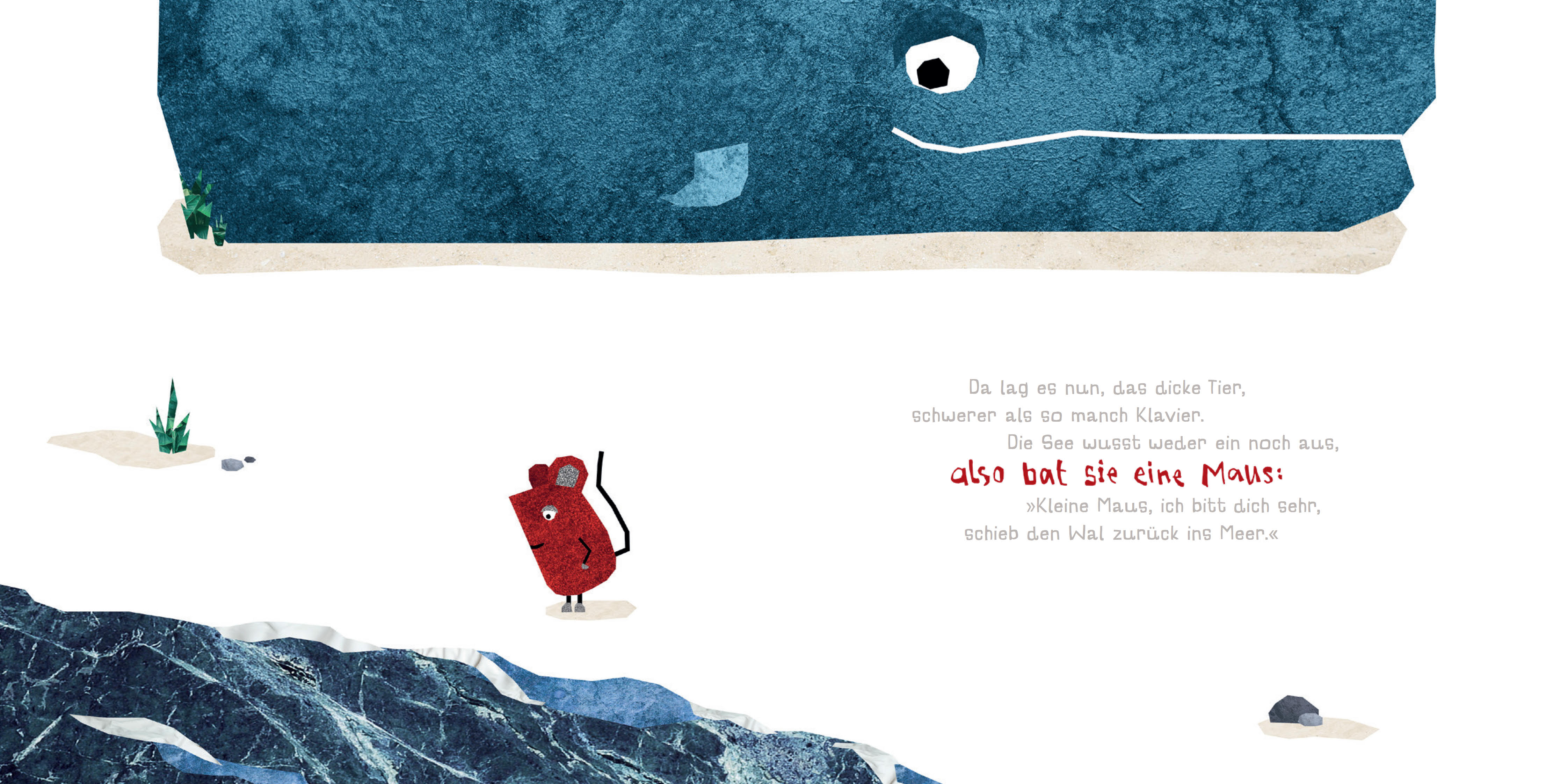 Das Meer hat Schnupfen und niest - hatschi! - den Wal an Land. Da liegt er nun, der dicke Kerl. Aber wie kommt er zurück ins Wasser? Können ihm die anderen Tiere helfen? Die Maus versucht ihr Glück, aber vergeblich. Auch die Stachelschweine, Hyänen und Elefanten schaffen es nicht allein. Doch da hat das Eulenkind eine Idee - und gemeinsam, bitte sehr, schieben sie den Wal ins Meer!