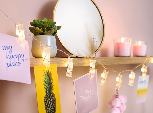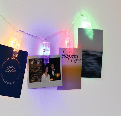 Jederzeit umgeben von den schönsten Erinnerungen: Die Smile LED-Clip-Lichterkette macht’s möglich! Die Lichterkette mit zehn transparenten, leuchtenden Klammern lässt Sie Ihre liebsten Fotos, Postkarten und Erinnerungsstücke im Handumdrehen aufhängen und beleuchten. So haben Sie Ihre Freund*innen, Familienmitglieder, Urlaubsmomente und Konzertkarten stets gut sichtbar über dem Schreibtisch, der Couch, dem Bett oder dem Küchentisch platziert. Auch für Geburtstags- oder Hochzeitsfeiern eignet sich die Clip-Lichterkette ideal als besonderes Deko-Element, da sie während der Feierlichkeiten mit Polaroids oder selbstgeschriebenen Zetteln befüllt werden kann.