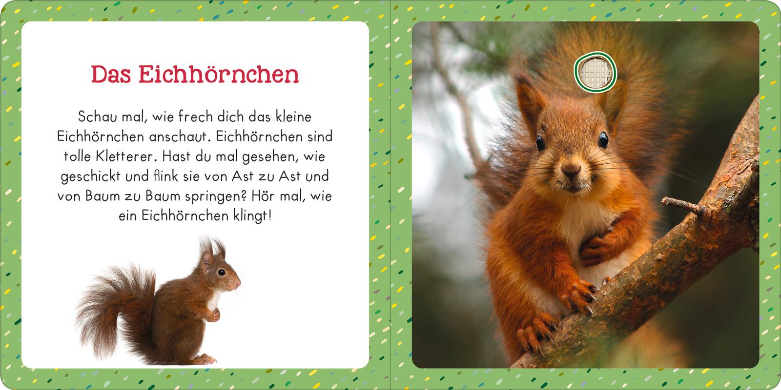 Die kleine Katze macht Miau, das kleine Pony wiehert und die Entenmama schnattert fröhlich quak, quak. Doch wie klingen das Löwenbaby, das Eichhörnchen und der kleine Schimpanse? In diesem ersten Soundbuch können schon die Allerkleinsten tolle Tiergeräusche entdecken. Einfach auf das Tier drücken und das passende Geräusch anhören. Das allererste Soundbuch mit hochwertigen Fotos und 6 Soundmodulen begeistert Eltern und Kleinkinder ab 12 Monaten und macht das erste gemeinsame Lesen zu einem interaktiven Erlebnis für alle Sinne.