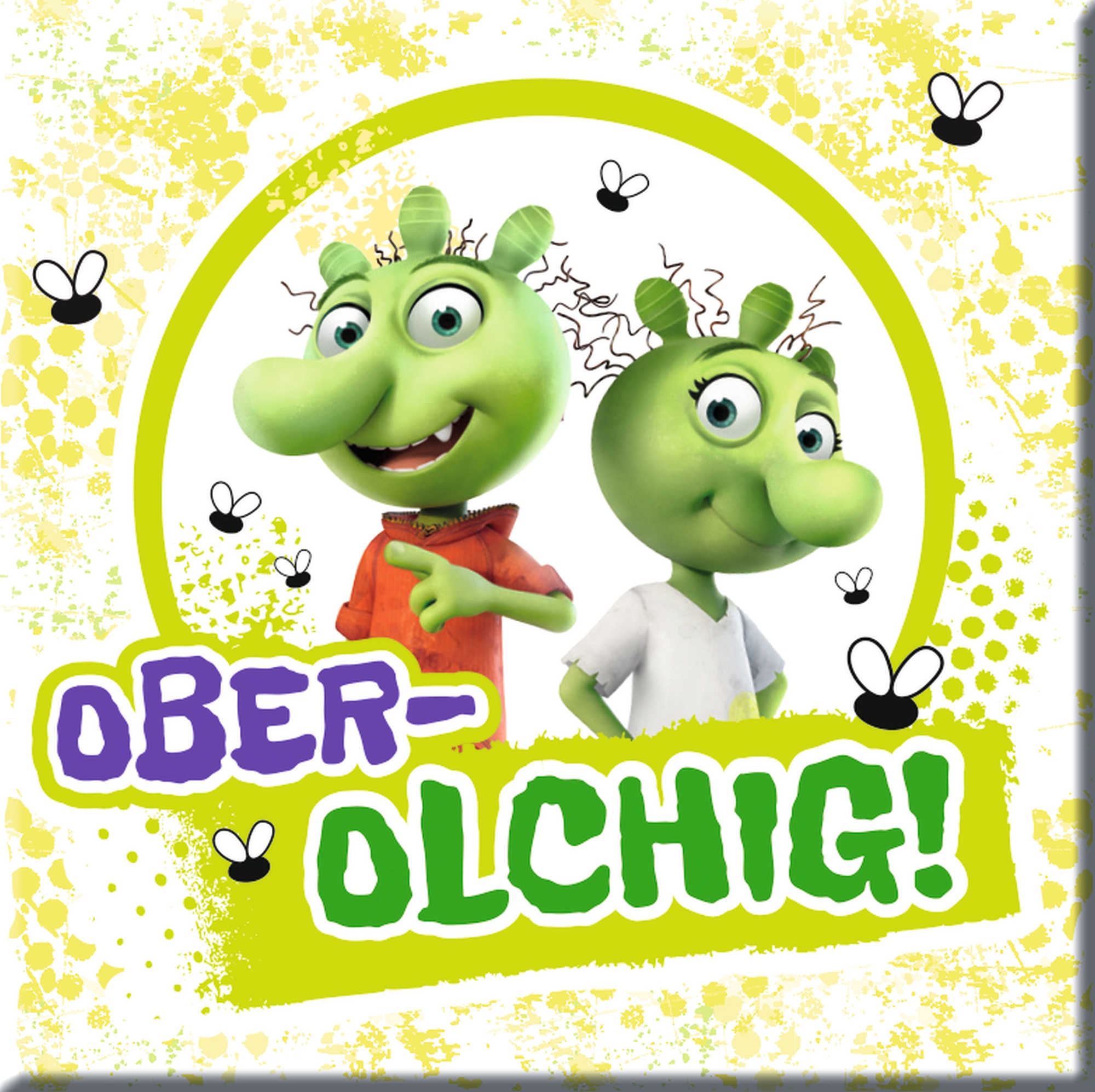 Magnet-Spaß mit den Olchis! Mit einem muffelfurzteuflischen "Ober-olchig!" können kleine Notizen, Hinweise oder Erinnerungen ganz einfach an Edelstahlkühlschränken, Dunstabzugshauben, Memo-Boards oder anderen magnetische Flächen befestigt werden.
