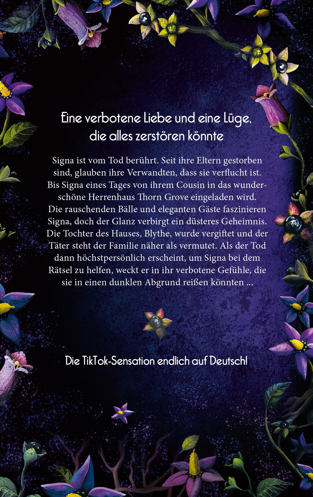 Signa ist vom Tod berührt. Seit ihre Eltern gestorben sind, glauben ihre Verwandten, dass sie verflucht ist. Bis Signa eines Tages von ihrem Cousin in das wunderschöne Herrenhaus Thorn Grove eingeladen wird. Die rauschenden Bälle und eleganten Gäste faszinieren Signa, doch der Glanz verbirgt ein düsteres Geheimnis. Die Tochter des Hauses, Blythe, wurde vergiftet und der Täter steht der Familie näher als vermutet. Als der Tod dann höchstpersönlich erscheint, um Signa bei dem Rätsel zu helfen, weckt er in ihr verbotene Gefühle, die sie in einen dunklen Abgrund reißen könnten ...