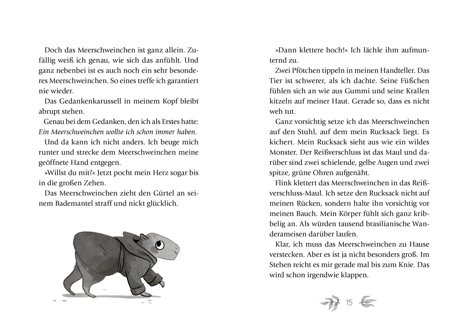 Alba staunt nicht schlecht, als sie am Flughafen in Brasilien auf ein sprechendes Meerschweinchen im Bademantel trifft. Sie findet den kleinen Kerl namens Tabatinga supersüß. Leider darf sie unter keinen Umständen ein Haustier haben! Schon gar nicht jetzt, wo Papa nach seinem Unfall im Rollstuhl sitzt. Aber Alba kann nicht widerstehen, denn Tabatinga stibitzt sich in Sekundenschnelle in ihr Herz - und wächst und wächst und wächst … Ist Tabatinga etwa gar kein Meerschweinchen? Und wie soll sie ihren neuen besten Freund bloß weiter vor ihren Eltern verstecken? Denn eines ist klar: Ein Leben ohne Tabatinga kann sich Alba nicht mehr vorstellen!