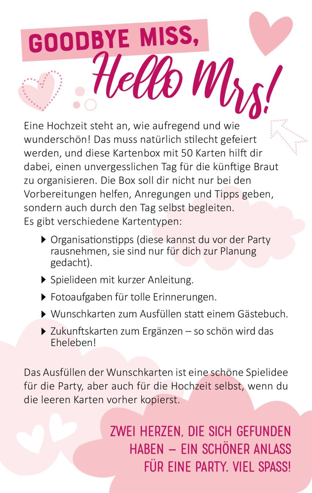 Goodbye Miss, Hello Mrs! Die Kartenbox zum Junggesellenabschied