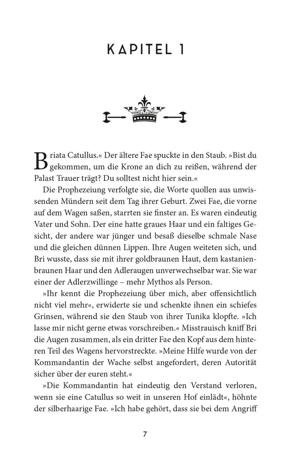 - Beschreibung Als die Königin des Westens umgebracht wird, ist die Fae-Kriegerin Briata fest entschlossen, den Mörder aufzuspüren. An der Seite von Prinzessin Lina bricht sie auf zum Hof des Westens. Dort ist der eisige Empfang durch die Fae noch das geringste ihrer Probleme: Es kursiert eine Prophezeiung, nach der Bri dem dortigen Herrscher die Krone entreißen wird. Zudem sind die Hexenjäger weiterhin auf königliches Blut aus, sodass Bri alles daransetzen muss, Prinzessin Linas Leben zu schützen. Fest entschlossen, die Hexenjäger zu besiegen, unterdrückt sie jegliche Gefühle, die Lina in ihr auslöst …