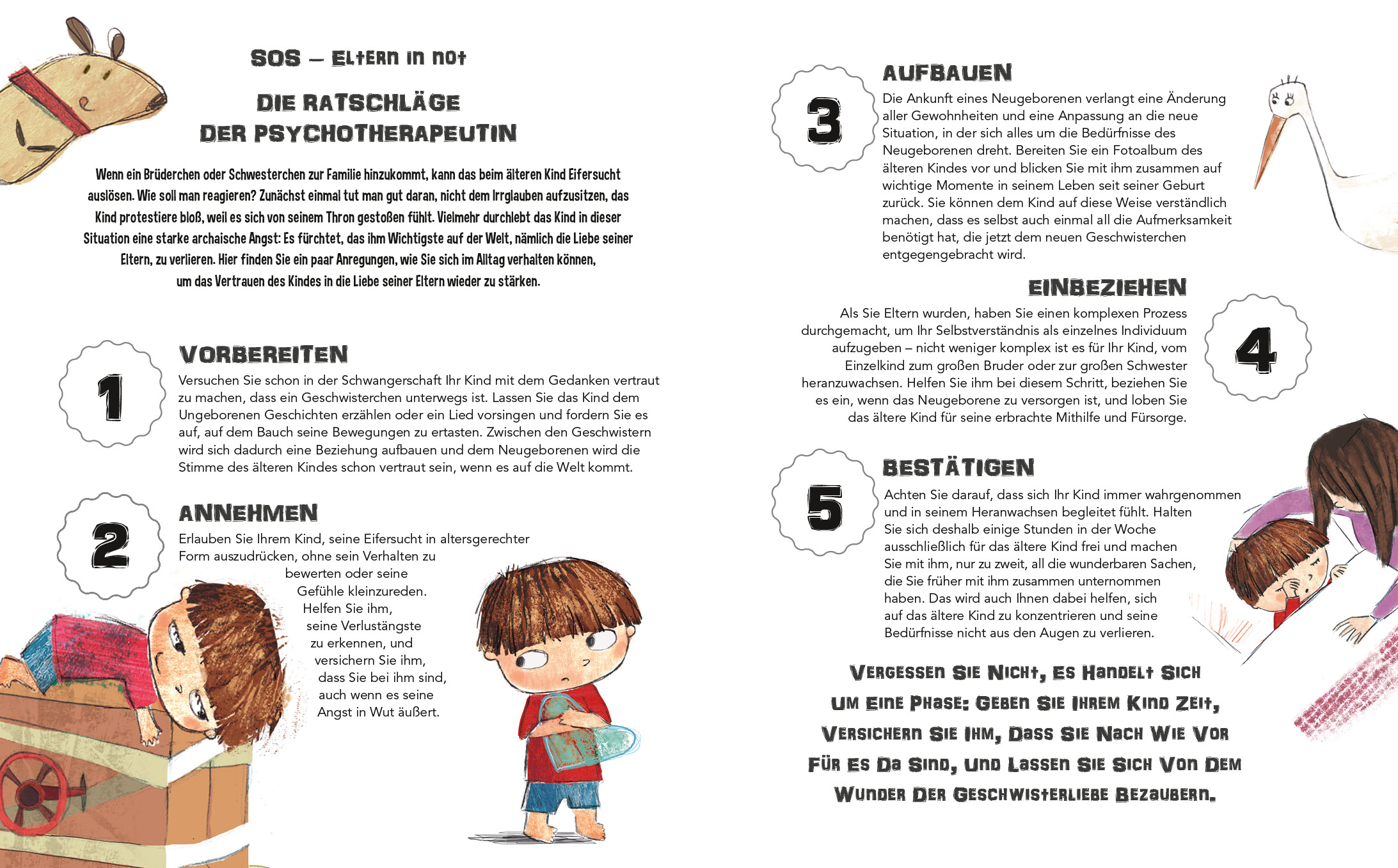Was passiert, wenn man seine Eltern mit einem Geschwisterchen teilen muss? Für den kleinen Tim tut sich da ein Riesenproblem auf: Er soll auf einmal ein großer Bruder sein und war doch bisher das Nesthäkchen. Wird er der unangefochtene Liebling bleiben? Wie Tim die schwierigen Zeiten meistert, einen Entwicklungsschub durchläuft und eine wunderbar entspannte Sicht auf die Dinge entwickelt, erzählt dieses Bilderbuch sehr liebevoll. Er verrät darin seine Anti-Eifersuchts-Tipps, die für Eltern wie auch Erstgeborene wichtige Helfer sind für einen reibungslosen Start mit dem Familienzuwachs. Fazit: So schön kann es mit dem neuen Baby sein.