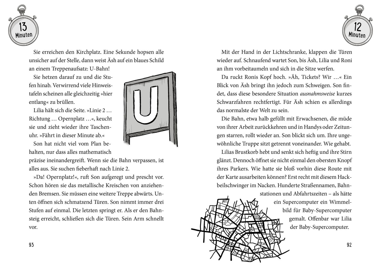 Die Handlung des Buchs erstreckt sich über zwei Stunden – und genau so lange braucht man auch, um es zu lesen. Eine Seite entspricht sowohl einer Leseminute als auch einer erlebten Minute im Buch. So ein Echtzeit-Abenteuer gab es noch nie!