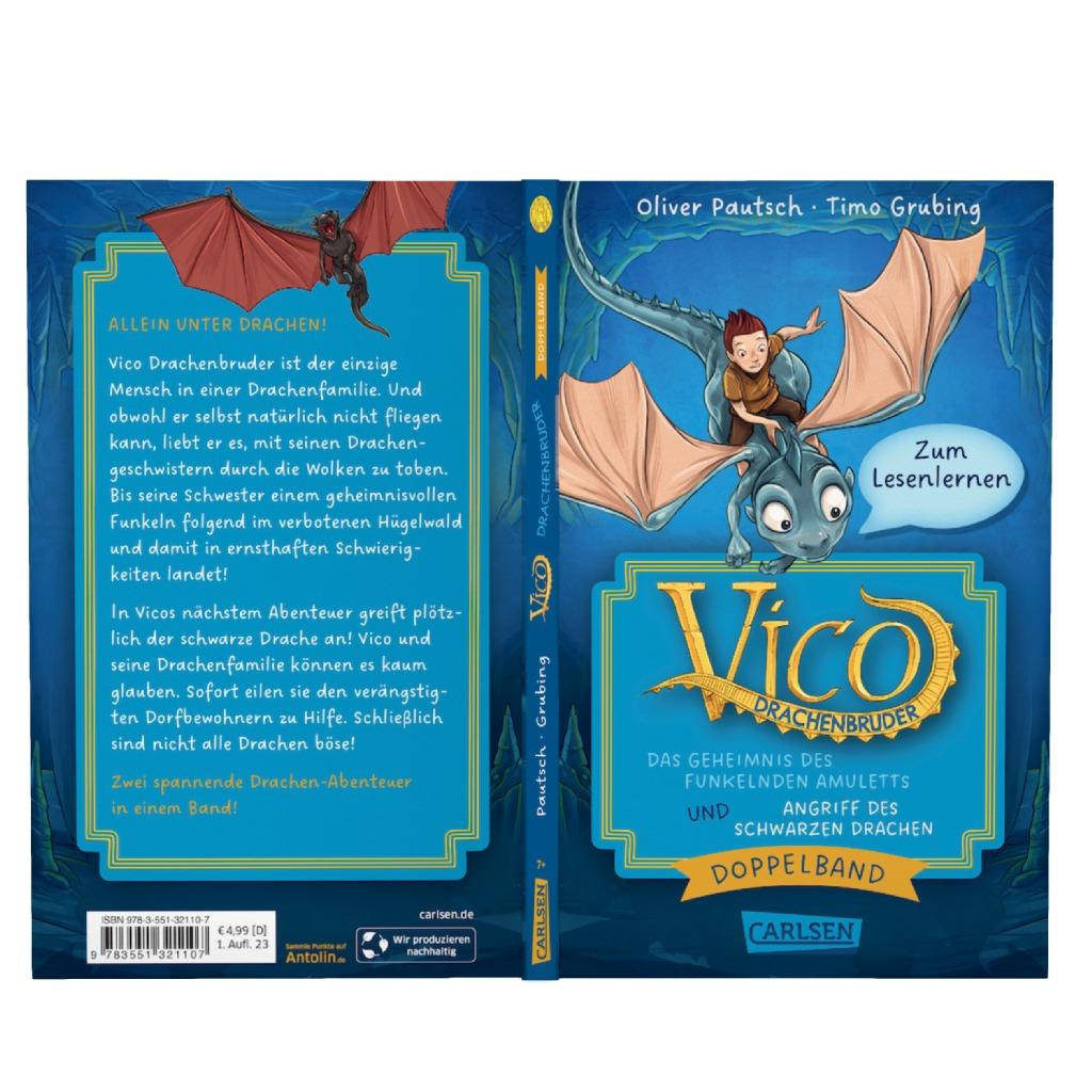 Vico Drachenbruder ist der einzige Mensch in einer Familie von Drachen. Und obwohl er selbst natürlich nicht fliegen kann, liebt er nichts so sehr wie mit seinen Drachengeschwistern durch die Wolken zu toben. Aber was tut seine Schwester da? Einem geheimnisvollen Funkeln folgend landet sie im verbotenen Hügelwald und damit in ernsthaften Schwierigkeiten! Vico jagt ihr furchtlos hinterher und stürzt sich so in sein erstes großes Abenteuer - und kurz darauf auch schon in sein zweites!