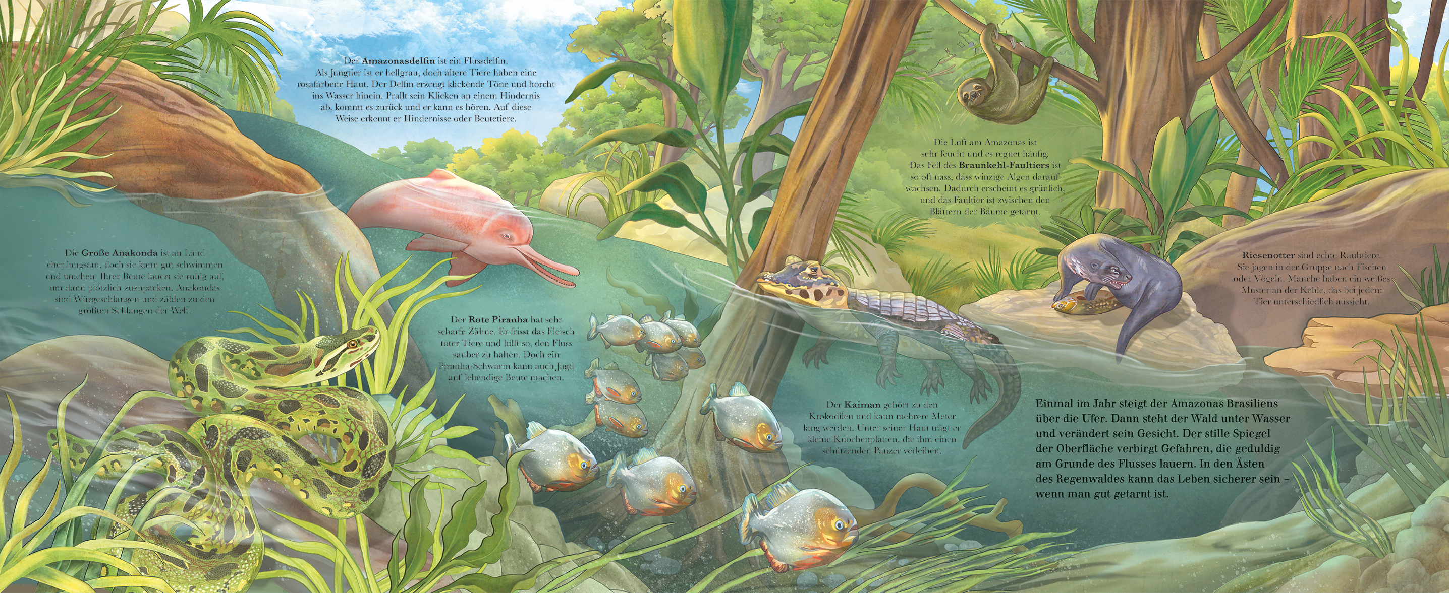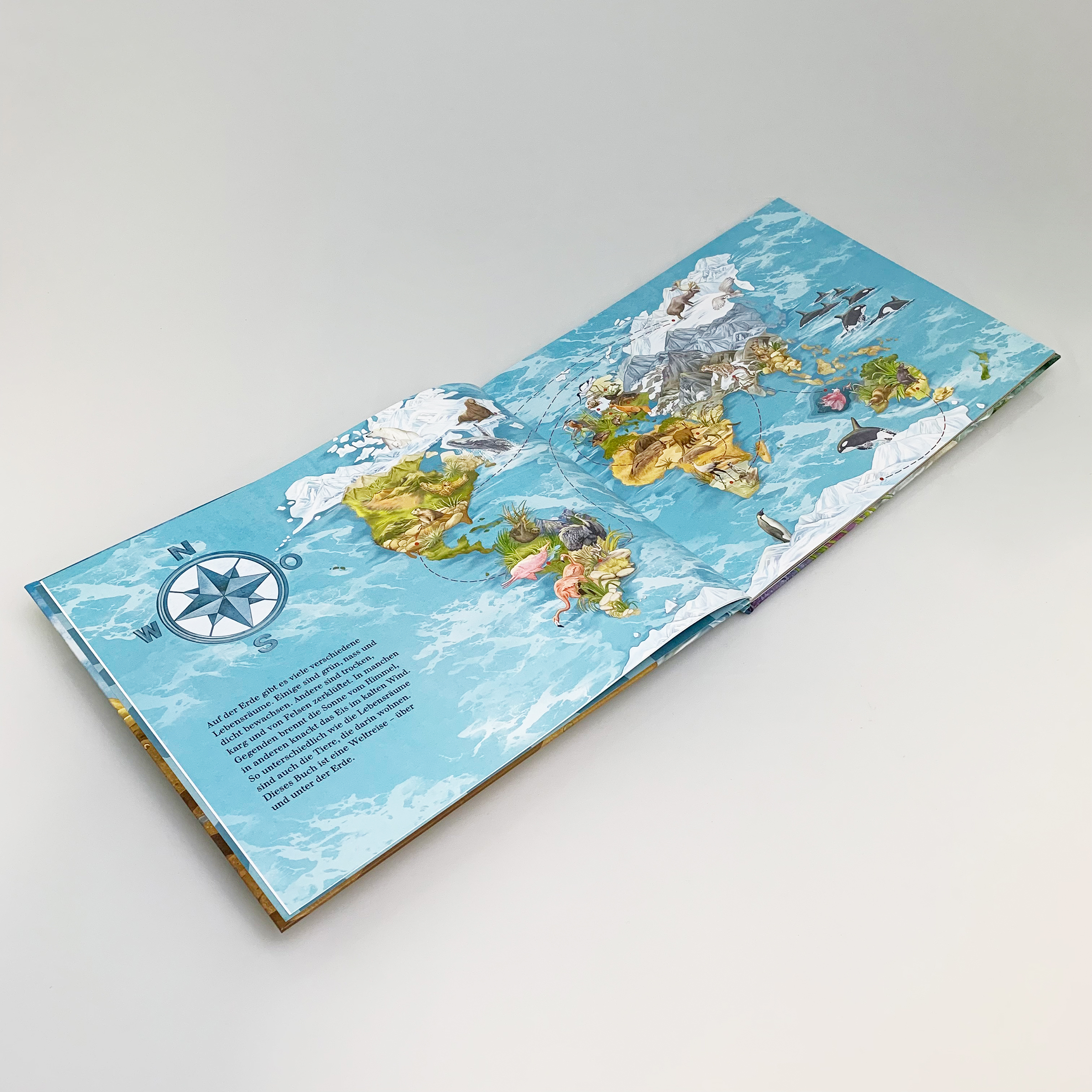 - Beschreibung Auf der Erde gibt es unzählige verschiedene Lebensräume. Einige sind dicht bewaldet, andere von Felsen zerklüftet, wieder andere liegen weit unter der Meeresoberfläche. In manchen Gegenden brennt die Sonne vom Himmel, in anderen knackt das Eis im kalten Wind. So einzigartig wie die Lebensräume sind auch die Tiere, die darin wohnen. Dieses besondere Sachbuch nimmt seine Leserinnen und Leser mit auf eine außergewöhnliche Weltreise über und unter die Erde – von der Arktis hinauf bis in den Himalaya und hinunter an den wohl tiefsten Punkt des Indischen Ozeans. Die Weltkarte zu Beginn erleichtert die geografische Verortung der einzelnen Lebensräume.