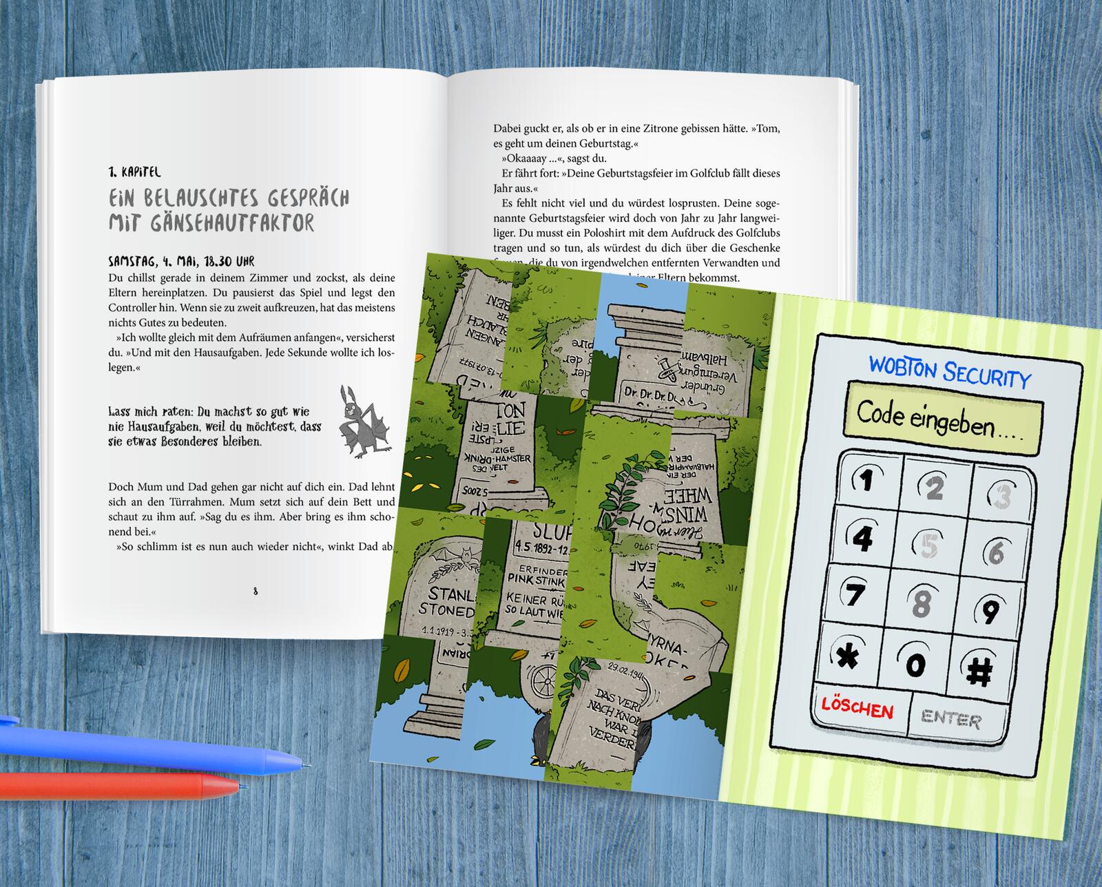 Bei diesem lustigen Abenteuer sind die Leserinnen und Leser immer mitten in der Geschichte. Sie folgen Hinweisen, knacken Codes und rätseln sich so bis zum Ziel.