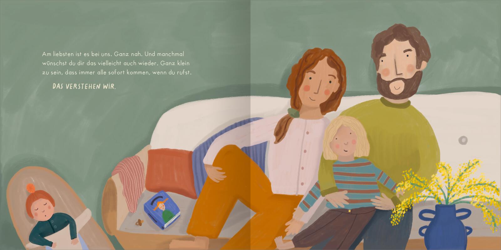 Ein einfühlsames Buch, das viele Gesprächsanlässe bietet – über die Vorfreude auf das Baby und die Gefühle von großen Geschwistern, wenn plötzlich noch jemand da ist und die Zeit von den Eltern weniger wird. Über den neuen Alltag, das, was sich verändert, und das, was bleibt.