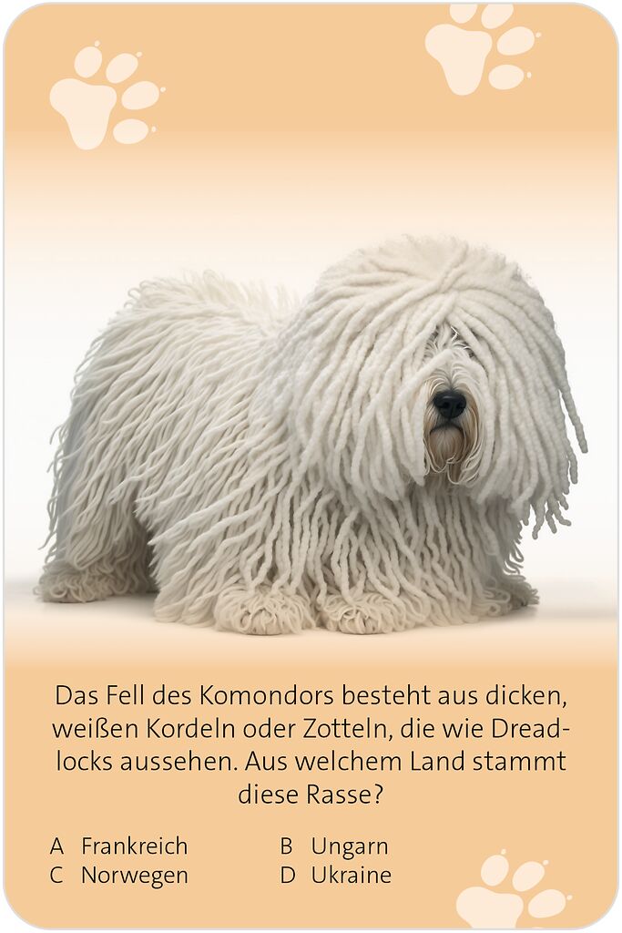 In diesem Quiz erfährt man viel Wissenswertes rund um die Themen Erziehung, Gesundheit, unterschiedliche Rassen, Verhalten und Ernährung von unseren liebevollen Vierbeinern. Man kann sein Wissen um unsere vierbeinigen Wegbegleiter testen und in die faszinierende und oft verblüffende Hundewelt eintauchen!
