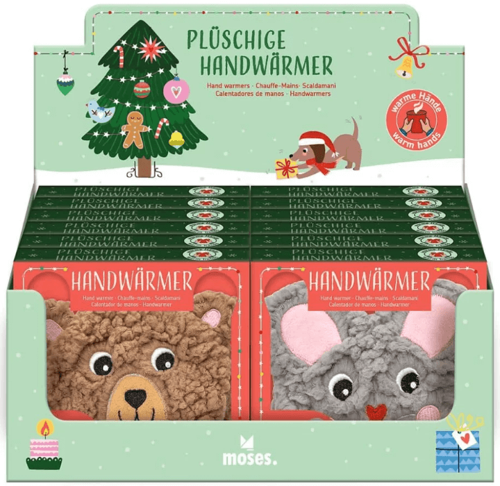Ob auf dem Schulweg, beim Spielen draußen oder einfach zwischendurch – diese niedlichen Handwärmer sorgen im Nu für warme Finger. Im Inneren steckt ein Gel mit Metallplättchen, das durch Knicken sofort Wärme abgibt. Von außen hüllt eine flauschige Plüschhülle in Bär- oder Maus-Form die Hände kuschelig ein.