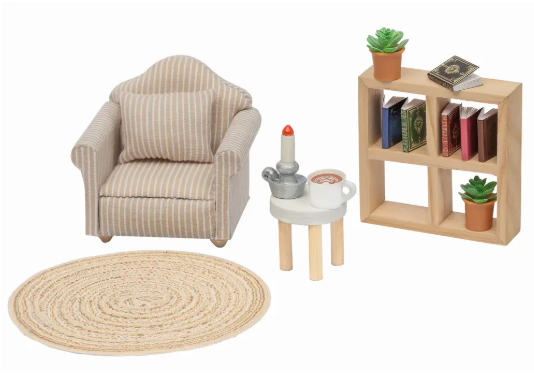 - detailreiche Mini-Möbel und Accessoires, von Schubkarre bis Teekanne