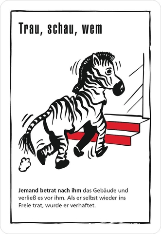 Das Kartenset enthält 50 knifflige, rabenschwarze Rätselkarten für Teenager und Erwachsene, die es durch geschicktes Fragen zu lösen gilt. Am meisten Spaß macht es, black stories zusammen mit Freund*innen zu knacken. Eine*r, der*die Gebieter*in, nimmt eine Karte aus dem Stapel, liest die kurze Geschichte vor, die auf der Vorderseite der Karte steht. Auf der Rückseite der Karte findet sich die Antwort, die der*die Gebieter*in natürlich für sich behält. Nun muss das Ratevolk sich an die Auflösung der Geschichte „heranfragen“. Dabei sollten die Fragen so formuliert sein, dass man sie mit „ja“ oder „nein“ beantworten kann. Ein gruselig-lustiger Ratespaß für kleine und große Gruppen – auch digital spielbar.