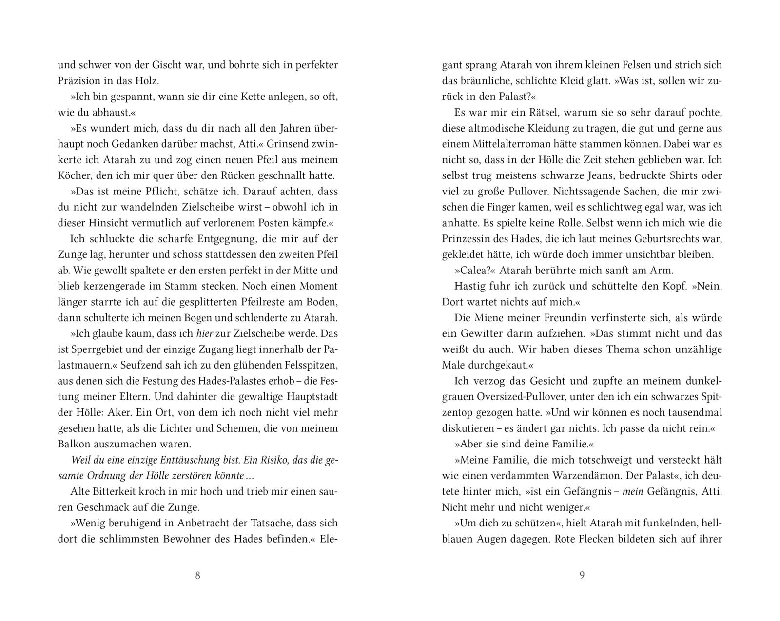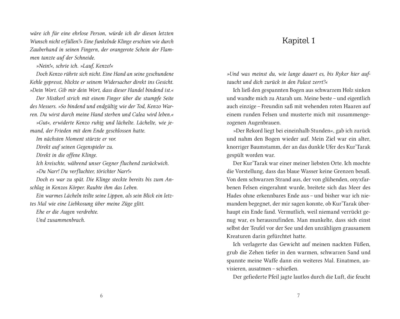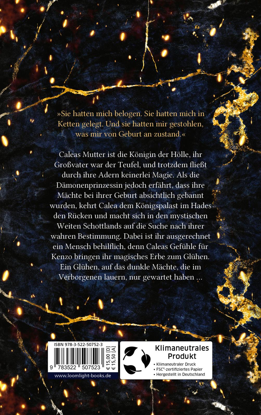 Caleas Mutter ist die Königin der Hölle, ihr Großvater war der Teufel, und trotzdem fließt durch ihre Adern keinerlei Magie. Als die Dämonenprinzessin jedoch erfährt, dass ihre Mächte bei ihrer Geburt absichtlich gebannt wurden, kehrt Calea dem Königspalast im Hades den Rücken und macht sich in den mystischen Weiten Schottlands auf die Suche nach ihrer wahren Bestimmung. Dabei ist ihr ausgerechnet ein Mensch behilflich, denn Caleas Gefühle für Kenzo bringen ihr magisches Erbe zum Glühen – Ein Glühen, auf das dunkle Mächte, die im Verborgenen lauern, nur gewartet haben ...