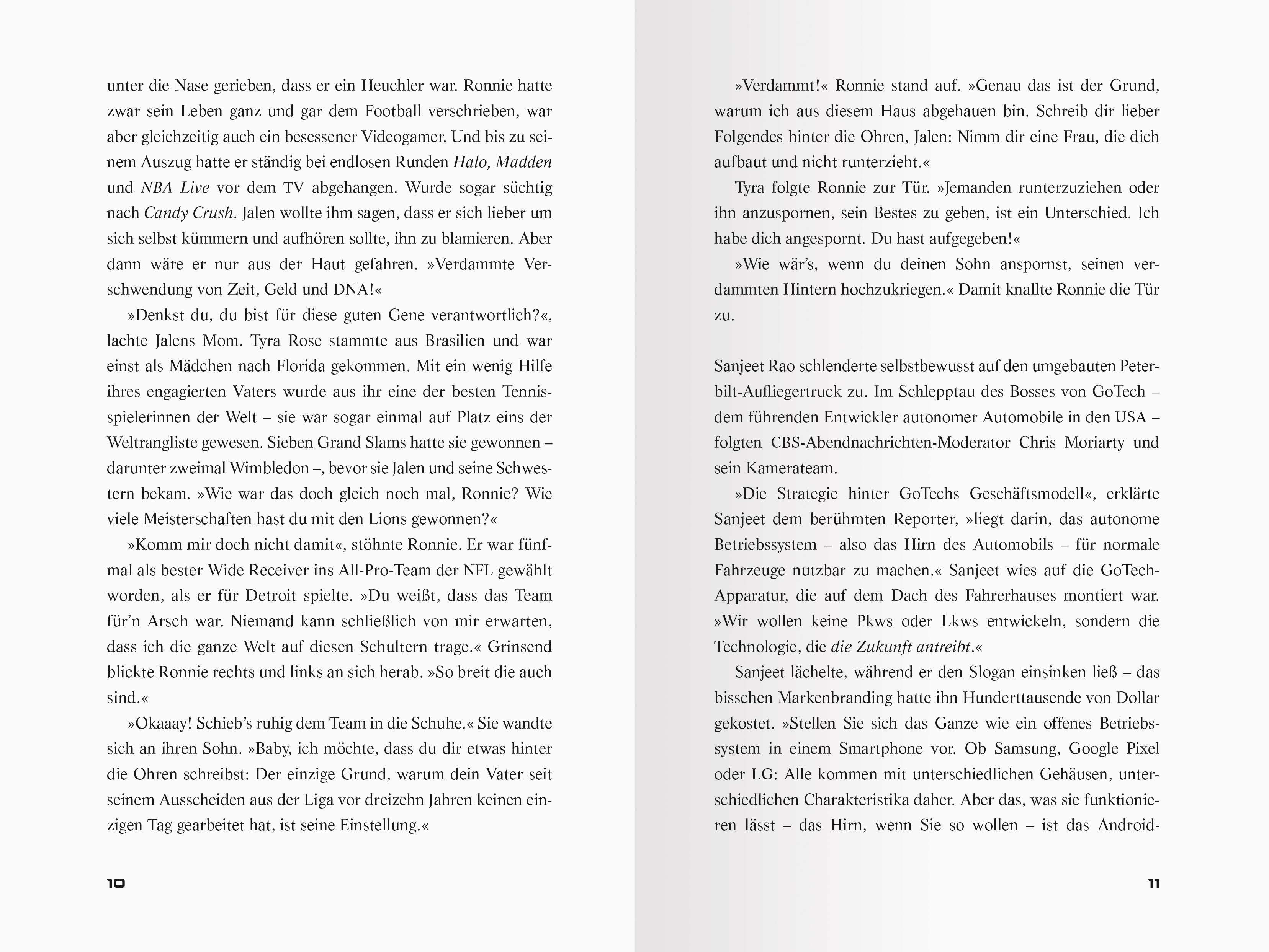 - Beschreibung In diesem Camp wirst du zum Helden! Als ein selbstfahrender Lkw bei einem Straßenfest in die Menschenmenge rast, herrscht im Camp Honor Alarmstufe Rot. Der Täter: ein Gamer, der den Lkw ferngesteuert hat – ohne es zu wissen! Was er für ein harmloses Computerspiel hielt, wurde zur tödlichen Realität. Ein Cyberterrorist namens Encyte bekennt sich zu dem mörderischen Hack und droht mit weiteren Anschlägen. Nun liegt es an Wyatt und seinen Freunden, Encyte zu stoppen. Oder spielen sie dem Feind damit genau in die Hände? Explosive Action für Adrenalin-Junkies ab 14 vom Co-Autor des SPIEGEL-Bestsellers „American Sniper“Eine abgelegene Insel. Ein geheimes Trainingslager der US-Regierung. Und eine Gruppe von Jugendlichen, die zu den besten Geheimagenten der Welt ausgebildet werden soll. Willkommen im CAMP HONOR! *** Explosive Action, heldenhafte Missionen und ein Team, das füreinander durchs Feuer gehen würde – Band 2 der Action-Reihe für Leser*innen ab 14! *** Mit geballten Fäusten machte Wyatt einen Schritt auf Darsie zu. Augenblicklich drangen die Bodyguards mit gezogenen Waffen auf ihn ein. In der Spiegelung der falschen Fenster konnte Wyatt die roten Punkte ihrer Laserzielerfassung auf Stirn, Hals und Brust sehen. »Waffen senken, sofort«, befahl Darsie. »Wyatt, ich verstehe, dass du Honor nicht verlassen willst. Aber die Welt braucht dich.« »Ich brauche mehr Training, um wirklich von Wert zu sein.« »Stimmt nicht«, widersprach Darsie. »Warum glaubst du, habe ich es dir so schwer gemacht, mich zu finden? Aus Sicherheitsgründen, natürlich. Doch es war auch ein Test. Also, wenn du mir hilfst, entweder Hi Kytos Unschuld zu beweisen oder sie als Encyte auszuschalten, verspreche ich, dir bei der Suche nach Hallsy zu helfen.« „Camp Honor“ im Überblick: • Band 1: Die Mission • Band 2: Der Auftrag Altersempfehlung: ab 14 Jahren