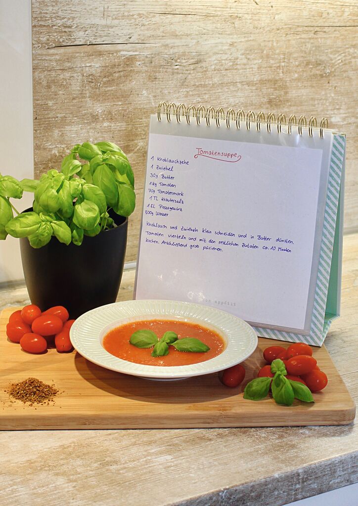 Mit dem stilvollen cook & STYLE Rezeptaufsteller macht das Kochen noch mehr Spaß! Der praktische Aufsteller bietet alles, was Hobbyköch*innen brauchen: Insgesamt 16 Rezeptblätter und 40 Klarsichthüllen bieten genug Platz für ihre eigenen handgeschriebenen Lieblingsrezepte sowie ausgeschnittene Rezepte aus Zeitschriften oder Ausdrucke aus dem Internet. Dank der fünf Register können Kochanleitungen und Backrezepte ganz einfach kategorisiert und geordnet werden, damit Sie in Ihrer Sammlung immer das passende Rezept finden.