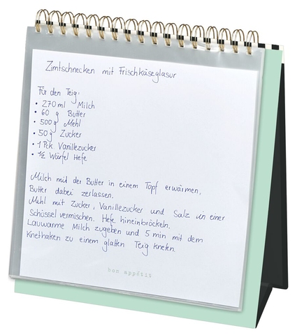 Der aufgestellte Block erlaubt einen Blick ins Rezept, ohne dass mit dreckigen oder nassen Händen in Kochbüchern und Notizheften geblättert werden muss. Ist man fertig mit dem Kochen, lässt sich der Aufsteller einklappen und besonders platzsparend in der Küche verstauen. Ein besonderes Highlight des Rezeptaufstellers ist der praktische Saisonkalender, der einen Überblick über die Vielfalt der saisonalen Obst- und Gemüsesorten im Frühling, Sommer, Herbst und Winter gibt und so die Zutatenwahl für das nächste Gericht inspirieren kann. Der Aufsteller ist das perfekte Geschenke für Hobbyköch*innen und ein Muss für alle, die sich eine eigene Rezeptsammlung der leckersten Gerichte anlegen möchten!