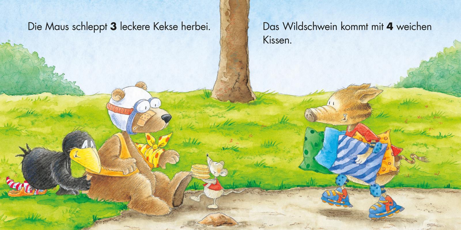 In diesem Kleinkinder-Pappebuch erklären der kleine Rabe Socke und seine Freunde die ersten Zahlen. Die Zahlen von 1 bis 5 werden spielerisch in eine kleine Geschichte eingebunden.