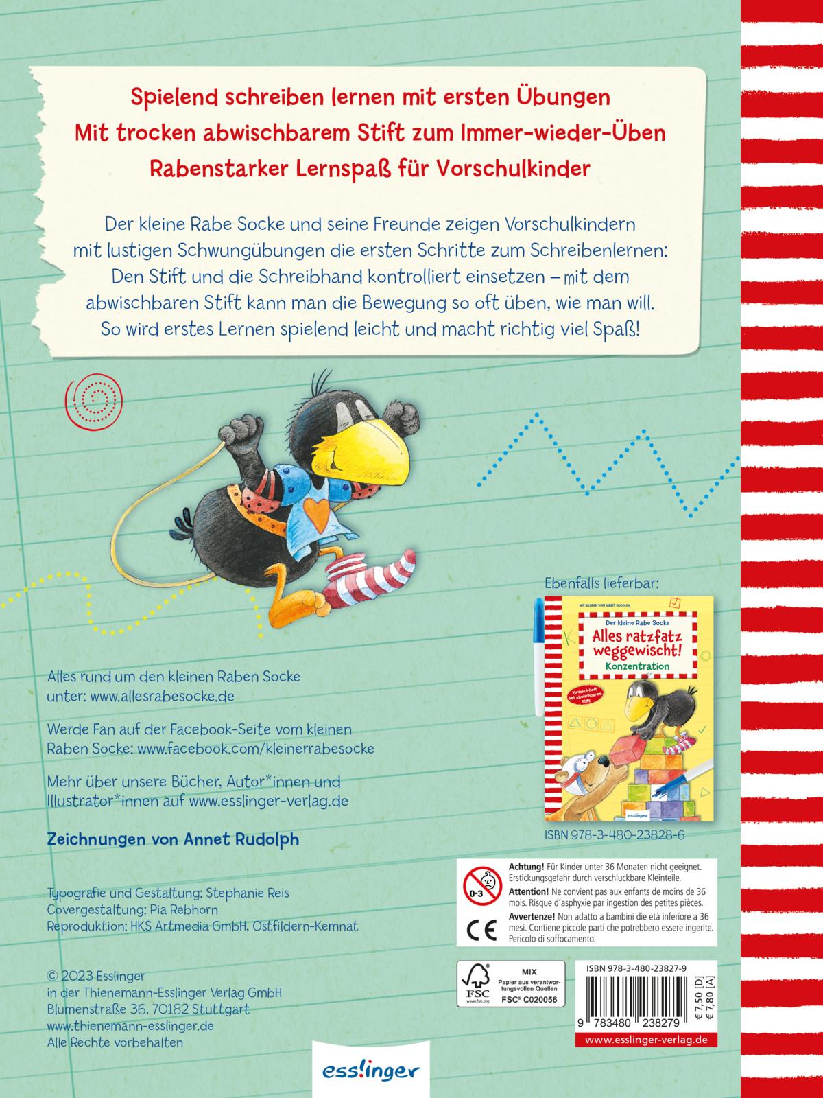 Der kleine Rabe Socke und seine Freunde zeigen Vorschulkindern wichtige Lernstufen für den Schulanfang: Einen Stift richtig zu halten und die Bewegung zu kontrollieren, ist gar nicht so einfach. Aber mit den abwechslungsreichen Schwungübungen zu allen Buchstabenformen und der Möglichkeit, diese immer wieder zu trainieren, wird aus der Malhand schon bald eine Schreibhand.