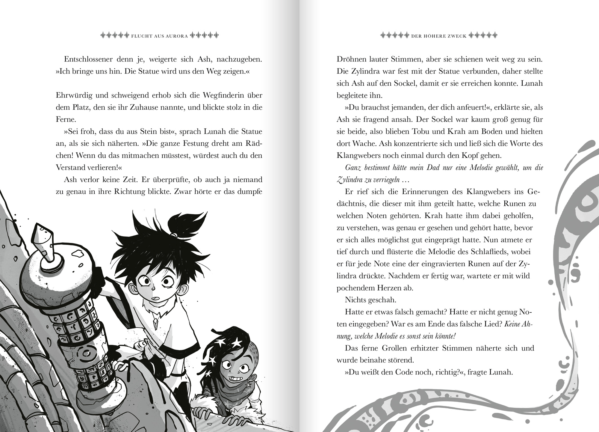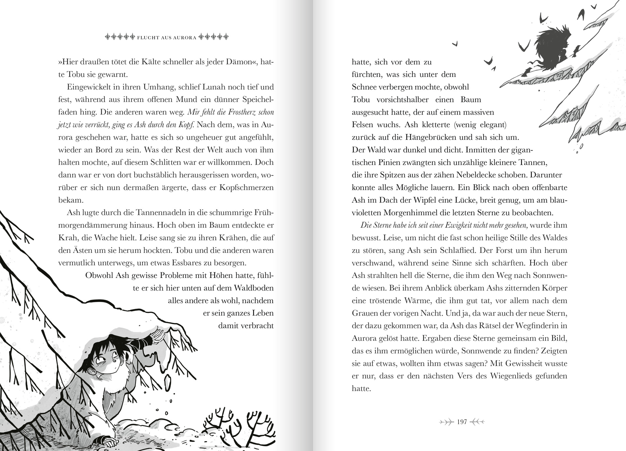 Ash und der Rest der Frostherz-Crew sind endlich in der Festung Aurora angekommen und können es kaum erwarten, den nächsten Hinweis zu finden, der sie zu seinen Eltern führen wird. Doch schnell wird klar, dass sie sogar in der Festung nicht sicher sind. Denn eine fanatische Pionier-Kapitänin treibt in der Stadt alle Klangweber zusammen. Ash muss erneut fliehen. Welchen Gefahren müssen er und die Crew sich jetzt im Schneemeer stellen? Die packende Fortsetzung der „Legende von Frostherz“-Trilogie!