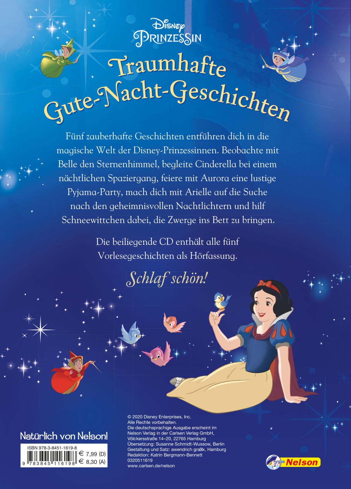 - Beschreibung Fünf zauberhafte Vorlesegeschichten entführen dich in die magische Welt der Disney-Prinzessinnen. Mit toller Geschichten-CD zum Anhören und Träumen! Beobachte mit Belle den Sternenhimmel, begleite Cinderella bei einem nächtlichen Spaziergang, feiere mit Aurora eine lustige Pyjamaparty, mach dich mit Arielle auf die Suche nach den geheimnisvollen Nachtlichtern und hilf Schneewittchen dabei, die Zwerge ins Bett zu bringen. Schlaf schön! Altersempfehlung: ab 3 Jahre