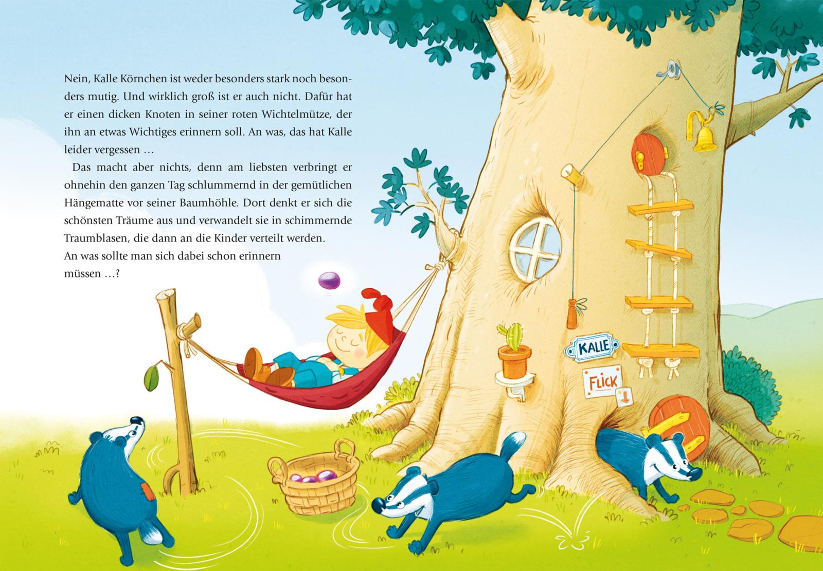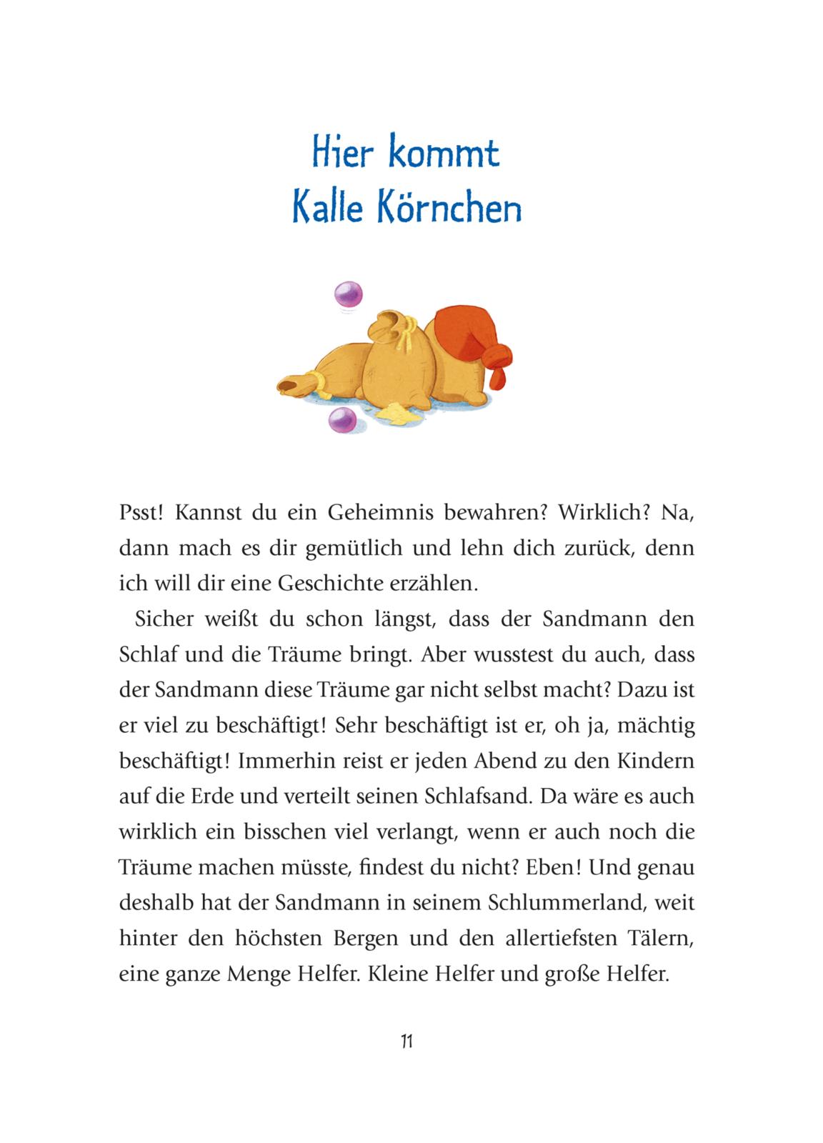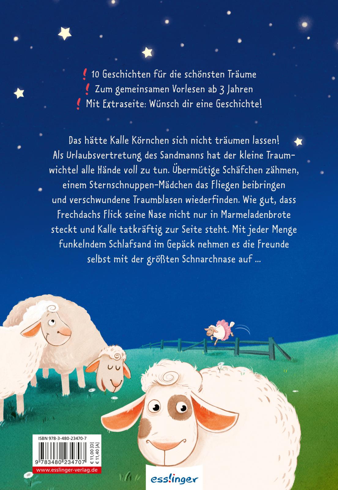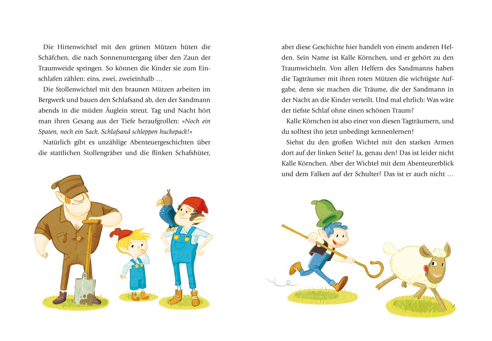 Als Urlaubsvertretung des Sandmanns erleben Traumwichtel Kalle Körnchen und sein Freund Flick die tollsten Abenteuer! Sie zähmen übermütige Schäfchen, bringen einem Sternschnuppen-Mädchen das Fliegen bei und finden verschwundene Traumblasen wieder. Mit jeder Menge funkelndem Schlafsand im Gepäck nehmen es die Freunde selbst mit der größten Schnarchnase auf …