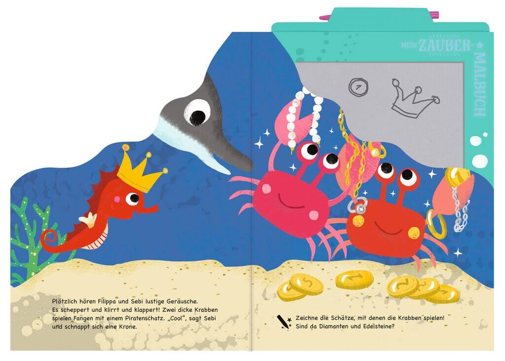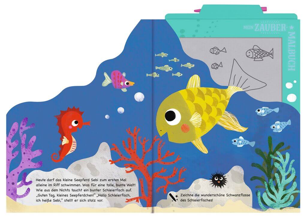 - Beschreibung Einzigartige Verbindung von Pappbuch und Zaubertafel. Unten im Meer trifft Sebi Seepferd auf die wunderlichsten Meerestiere. Der Schleierschwanz hat so einen tollen Schwanz oder die Quallen die längsten Tentakeln. Das alles können die Kinder auf der Zaubertafel direkt passend dazumalen. Altersempfehlung: ab 3 Jahren