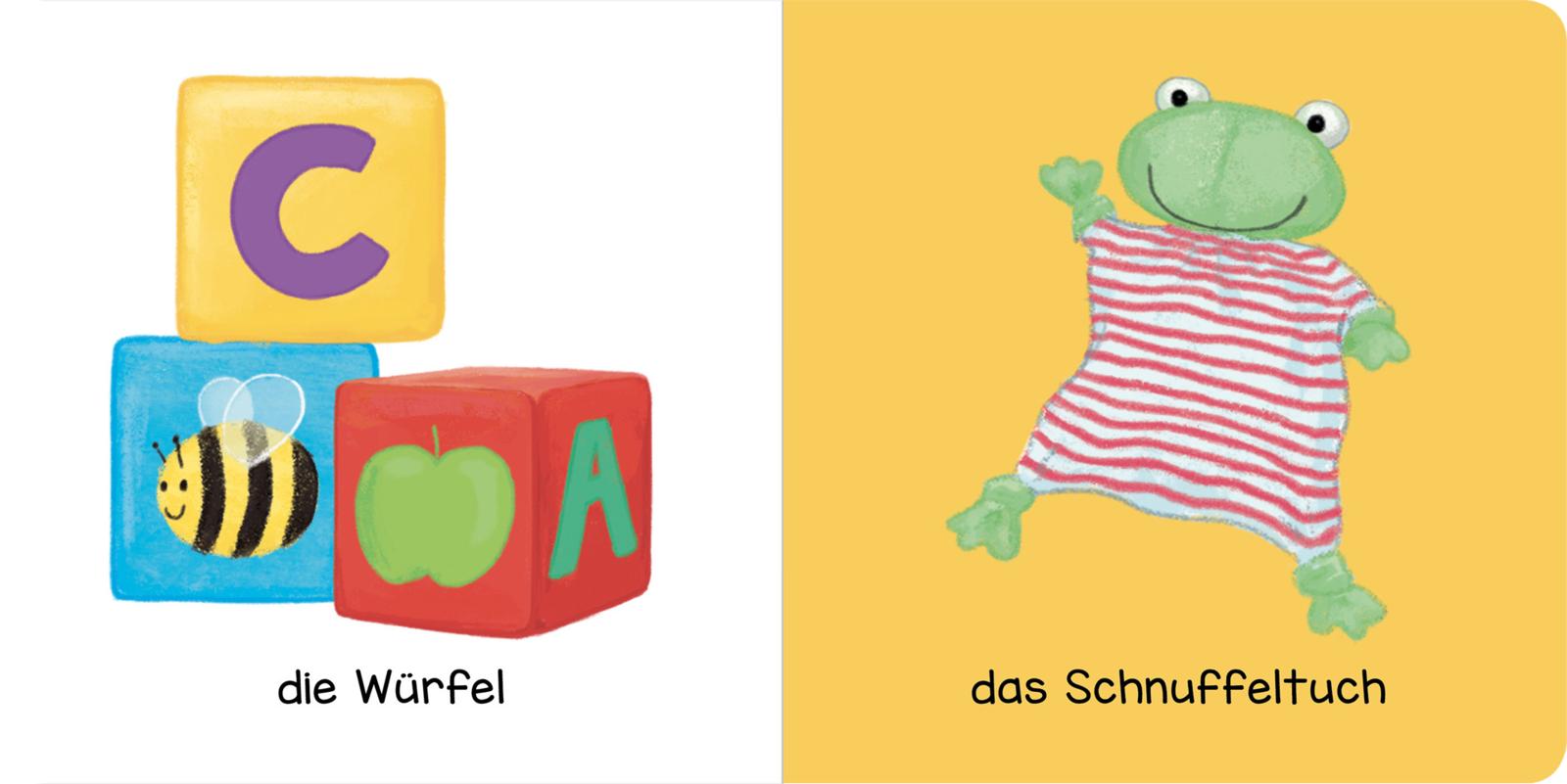 - Beschreibung Kennst du das?In diesem ersten Bilderbuch gibt es auf jeder Seite etwas aus dem Babyalltag zu entdecken. Kannst du es schon benennen? Für kleine WeltentdeckerKleinkinder entdecken jeden Tag ein neues Stück unserer Welt. Sie lernen neue Dinge und Wörter kennen und versuchen, diese einzuordnen und zu kategorisieren. Dieses erste Bilderbuch hilft ihnen dabei. Auf jeder Seite können bekannte Gegenstände entdeckt und benannt werden. So macht Sprechenlernen Spaß! • Ideale Sprachförderung: Bunte Illustrationen laden zum Entdecken und Benennen ein• Perfekt für kleine Kinderhände: Dicke Pappseiten, handliches Format und wattierter Umschlag• Geprüfte Qualität: Das Buch unterliegt strengen Sicherheitsanforderungen und regelmäßigen Kontrollen nach europäischer Spielzeugsicherheitsrichtlinie Altersempfehlung: ab 1 Jahr