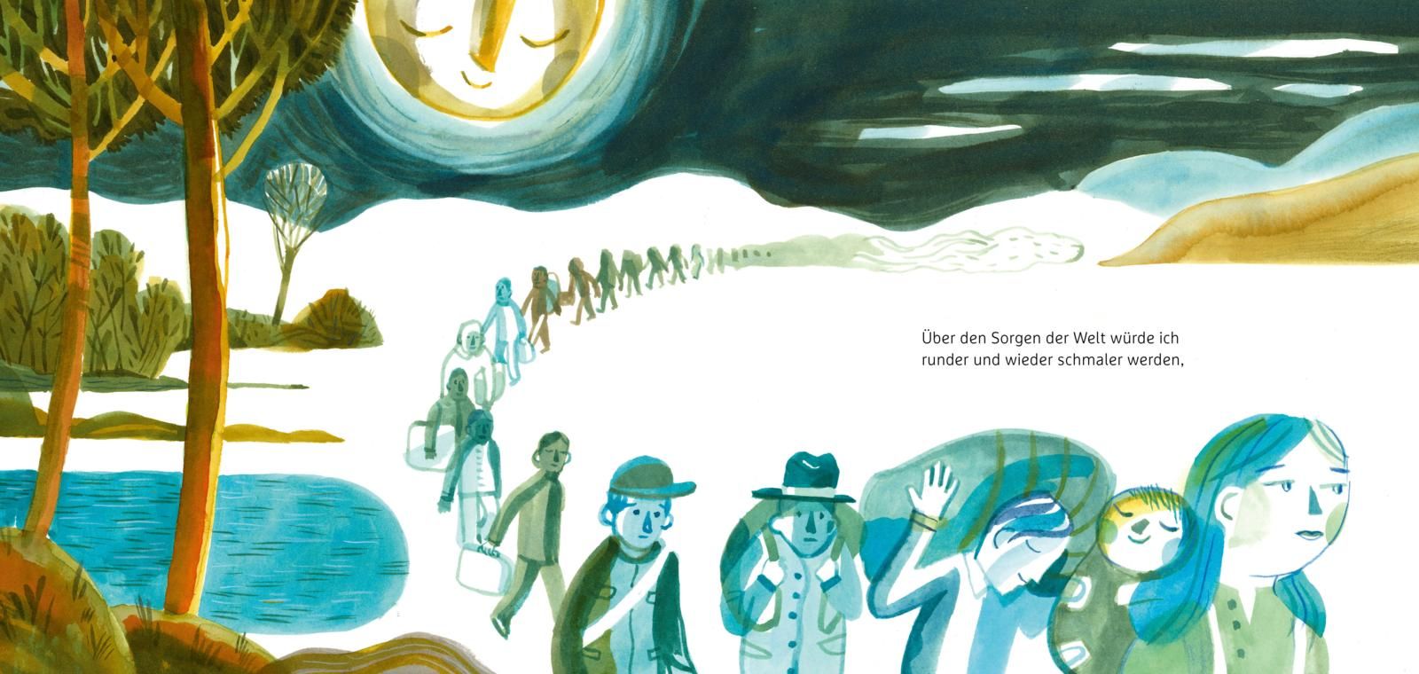 Eine poetische Reise mit dem Mond, ideal fürs abendliche Vorleseritual, für Kinder ab 4 Jahren.