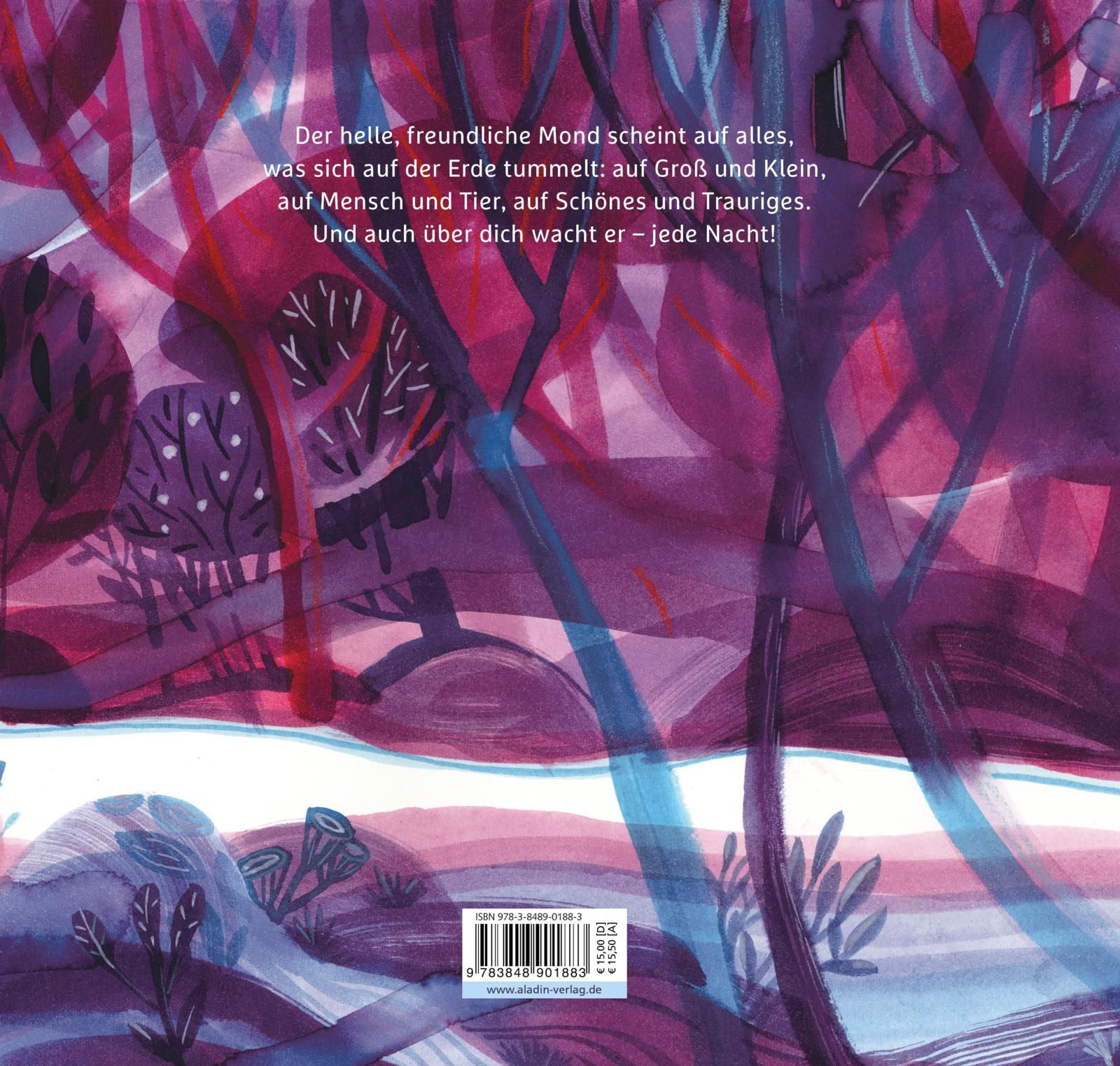 Der helle, freundliche Mond scheint auf alles, was sich auf der Erde tummelt: auf Groß und Klein, auf Mensch und Tier, auf Schönes und Trauriges. Und auch über dich wacht er – jede Nacht!