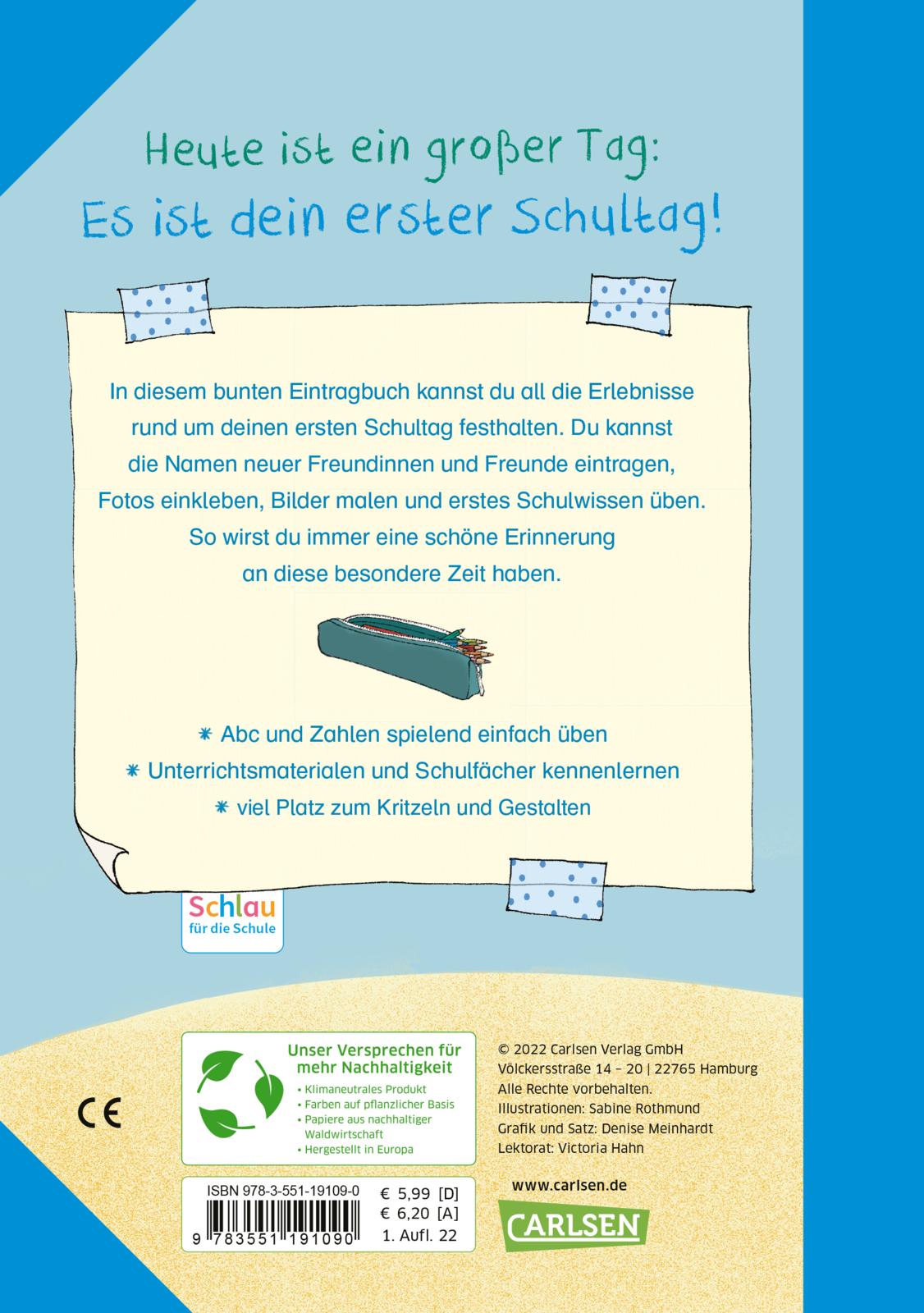 In diesem bunten Eintragbuch können Mädchen und Jungs Fotos einkleben, Bilder malen und die ersten Schulerlebnisse festhalten. Sie können Unterrichtsmaterialien und Schulfächer kennenlernen, die Namen neuer Freundinnen und Freunde eintragen und das Schreiben ausprobieren. Kindgerechte Fragen und die fröhliche Gestaltung bieten viel Platz zum Kritzeln und Malen. So wird jedes Beschäftigungsbuch zu einem ganz persönlichen Erinnerungsbuch an eine ganz besondere Zeit.