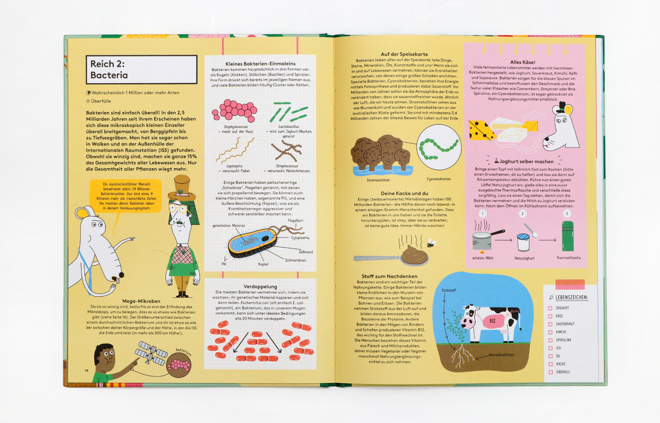 Lebewesen gibt es überall auf unserem Planeten, sei es im Dschungel, in der Wüste, in den Meeren, Ebenen, Wiesen und Wäldern. Es wimmelt und wuselt überall! Das comic-haft illustrierte Buch nimmt neugierige Kinder ab 10 Jahren mit auf ein ganz und gar erstaunliches Abenteuer in die Natur und auch in die Zivilisation, denn: Lebewesen finden sich sogar im Haus, im eigenen Zimmer und sogar im und am eigenen Körper! Wissenschaftliche und kuriose Fakten sind spannend aufbereitet und kindgerecht und witzig illustriert. So macht Lernen Spaß!