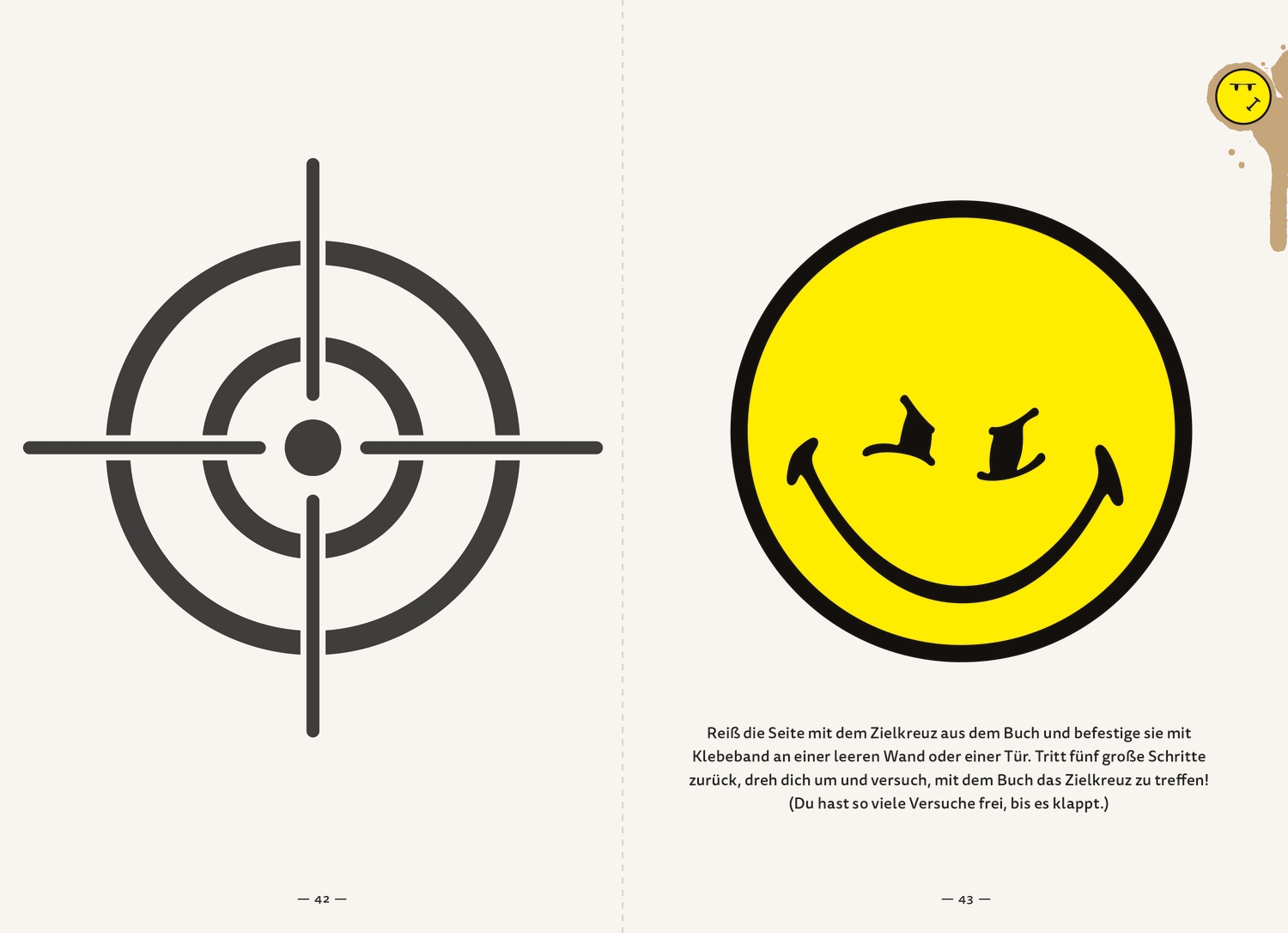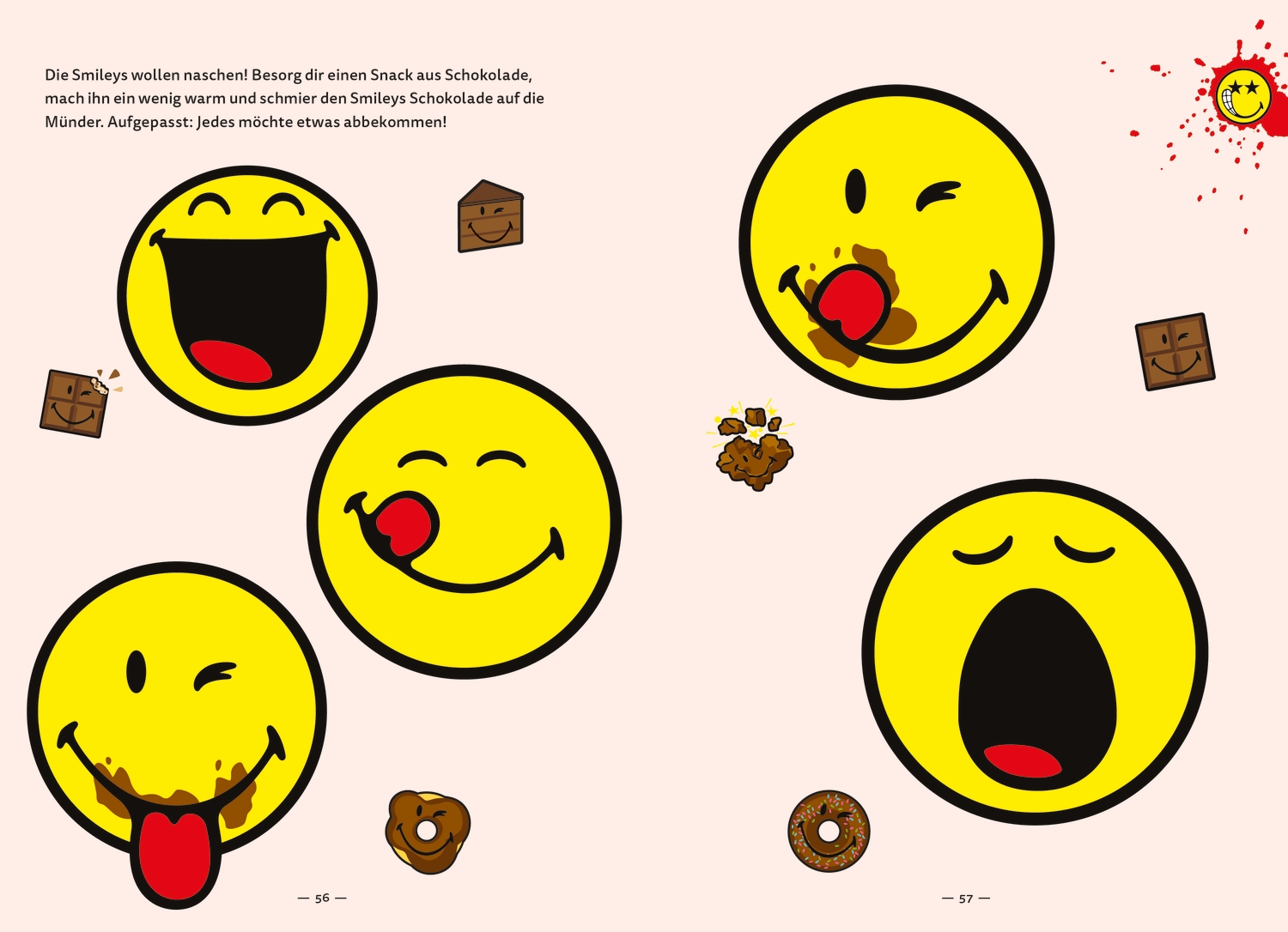 Dieses Buch will beklebt, bemalt, zerschnitten, zerrissen, geliebt, zerlöchert und zerstört werden. Es möchte Blitzableiter für starke Gefühle und Auslöser großer Kreativität sein. In diesem Buch können Kinder ihrer Kreativität vollen Lauf lassen und dürfen Dinge tun, die sie mit „normalen“ Büchern nicht machen sollen. Dieses Mitmachbuch dreht sich rund um die beliebten Smileys®. Sie sind bunt, liebenswert und ein wenig chaotisch. Sie stehen für Glück, Freude, Gefühle und Kreativität. Wer wäre da besser geeignet, um Ideen und Fantasie zu beflügeln und Emotionen in die richtigen kreativen Bahnen zu bewegen? „Tob dich aus mit den Smileys®“ ist ein Aufruf, der eigenen Kreativität freien Lauf zu lassen.