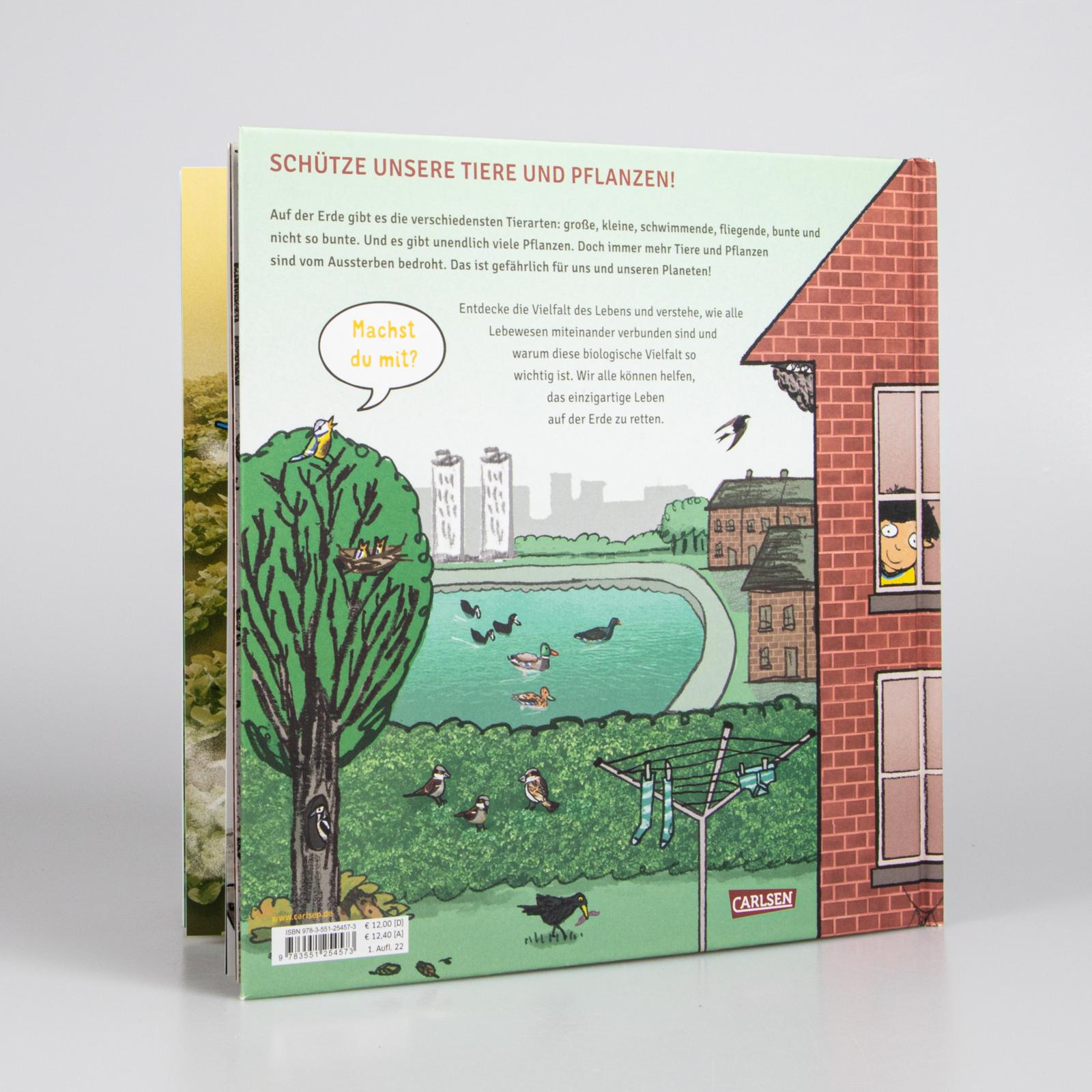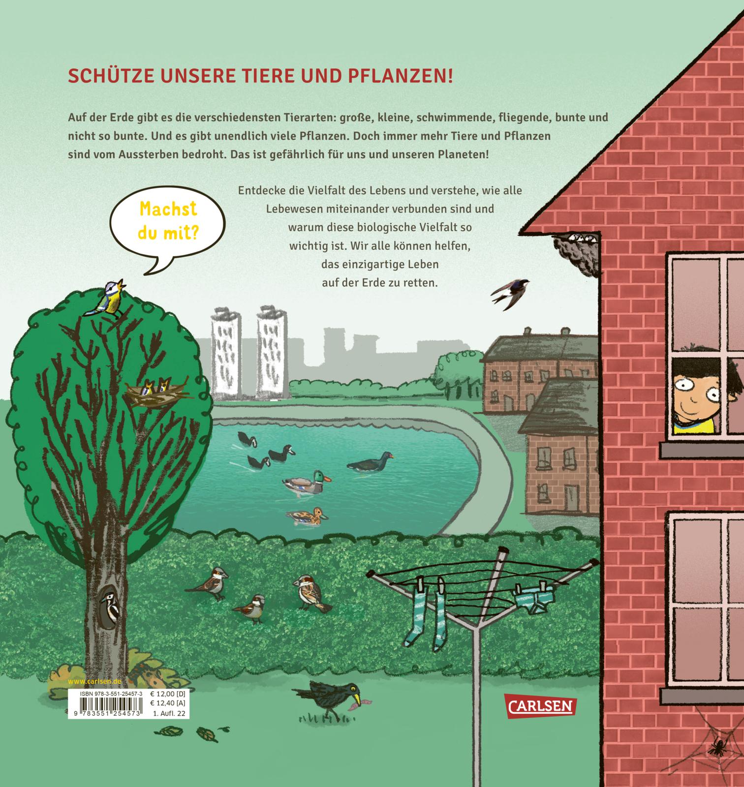 Auf der Erde gibt es die verschiedensten Tierarten: große, kleine, schwimmende, fliegende, bunte und nicht so bunte. Und es gibt unendliche viele Pflanzen. Doch immer mehr Tiere und Pflanzen sind vom Aussterben bedroht. Das ist gefährlich für uns und unseren Planeten! Dieses Buch zeigt, wie alles Leben auf der Welt zusammenhängt und erklärt, warum es wichtig ist, diese biologische Vielfalt zu schützen. Mit Anregungen und Ideen für ein umweltbewusstes Handeln, die schon Kindergartenkinder mit ihren Eltern umsetzen können - denn Umweltschutz geht uns alle an!