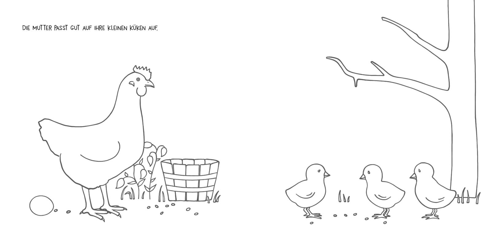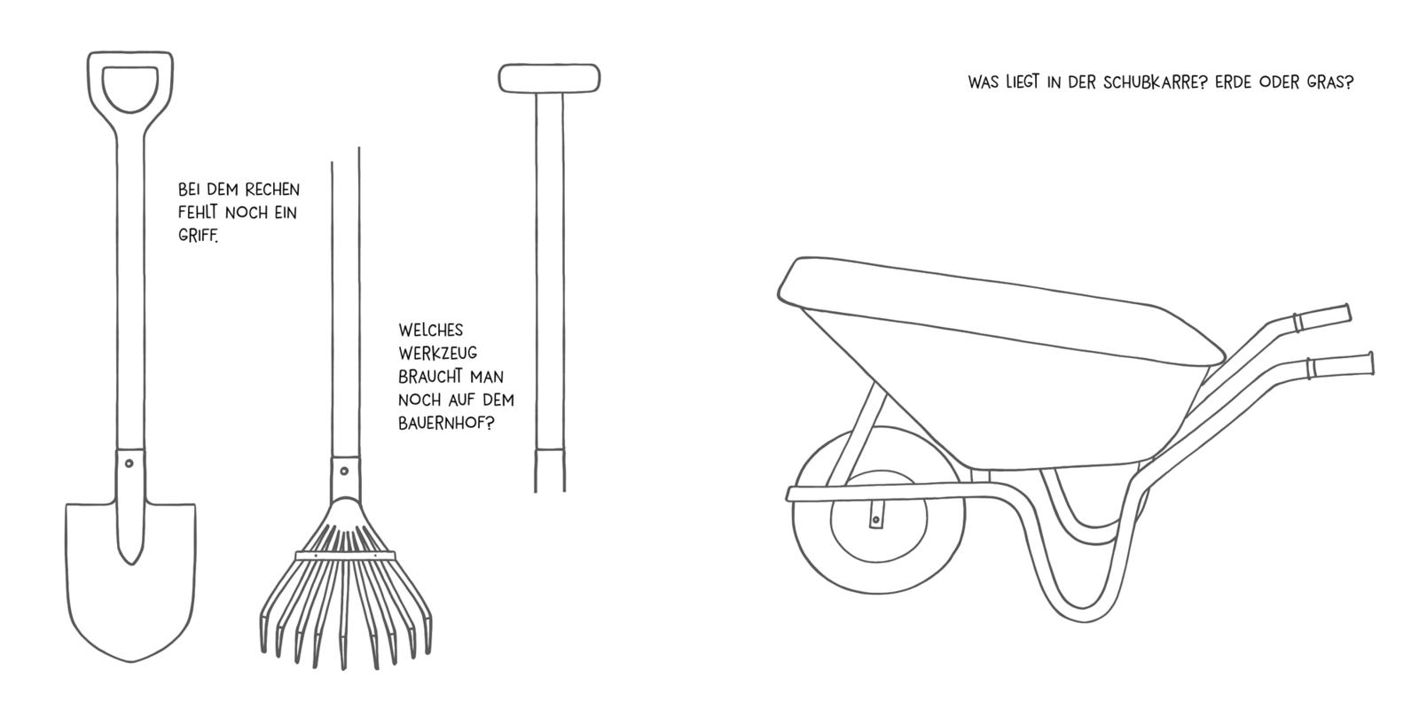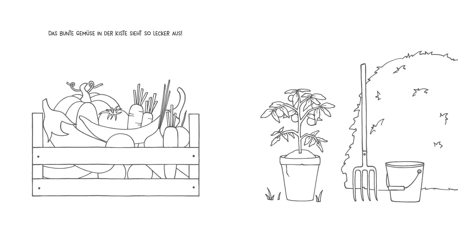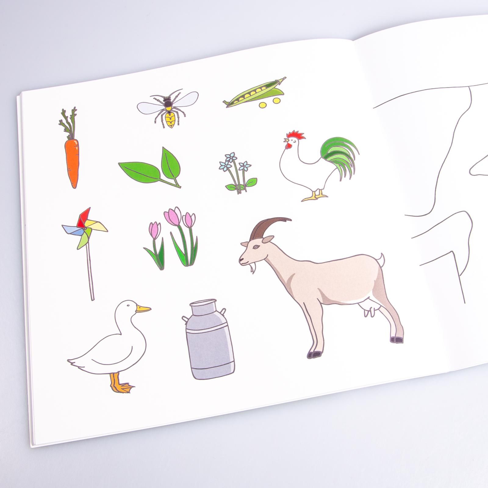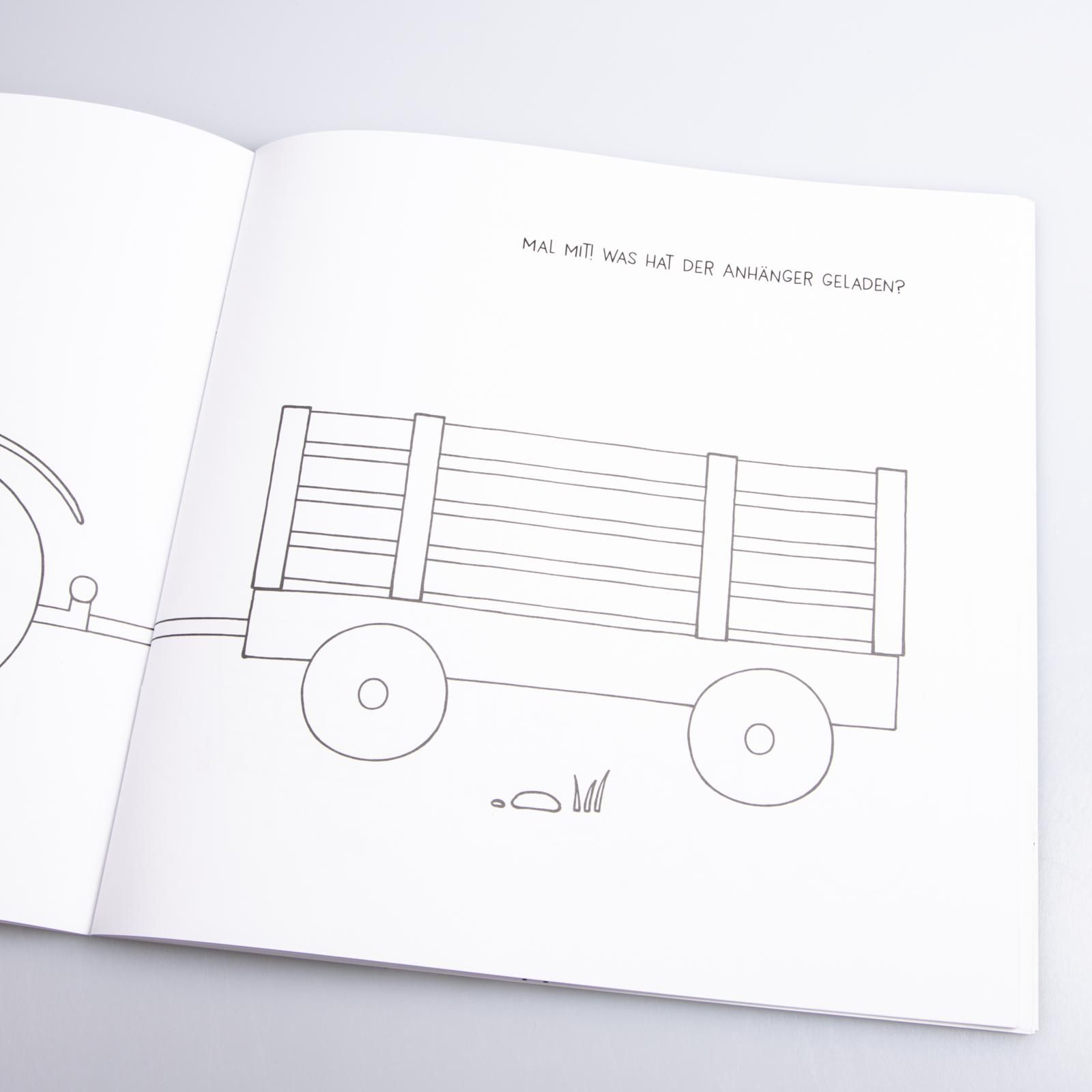 In diesem Buch gibt es tolle Bauernhofmotive zum Ausmalen: eine Scheune, einen Traktor, ein Schwein, einen Gockelhahn, einen Getreidesack, viele Obststücke, einige Gemüsesorten, einen Misthaufen und vieles mehr.