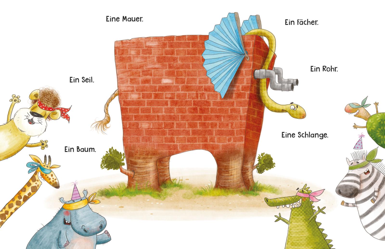 Alle und keiner ist die überraschende Auflösung. Denn ein stämmiges Bein fühlt sich wie ein Baum an, der feste Bauch wie eine Mauer, der bewegliche Rüssel eindeutig wie eine Schlange … – aber alles zusammen ist es ein Elefant.