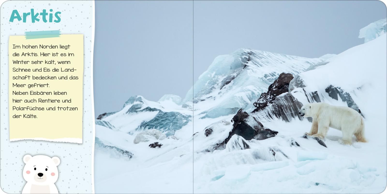 Auf unserer Erde leben die unterschiedlichsten Tiere in den verschiedensten Lebensräumen – in der Hitze der Savanne, der feuchten Wärme des Dschungels, der unerbittlichen Kälte der Arktis und in den Tiefen der Ozeane. Doch sie haben eines gemeinsam: Ihre Lebensräume sind in Gefahr, viele Tierarten vom Aussterben bedroht. Dieses erste Tierfotobuch stellt die Lebenswelt dieser Tiere auf einzigartigen Fotos dar und zeigt den Kleinen, wie wunderschön und kostbar die Vielfalt unserer Welt ist. Eine Welt, die es zu schützen gilt. Dieser einzigartige Begleiter durch das Tierreich verdeutlicht schon kleinen Kindern, wie wichtig es ist, die Natur zu achten und den Tieren zu helfen, ihre Lebensräume zu erhalten.