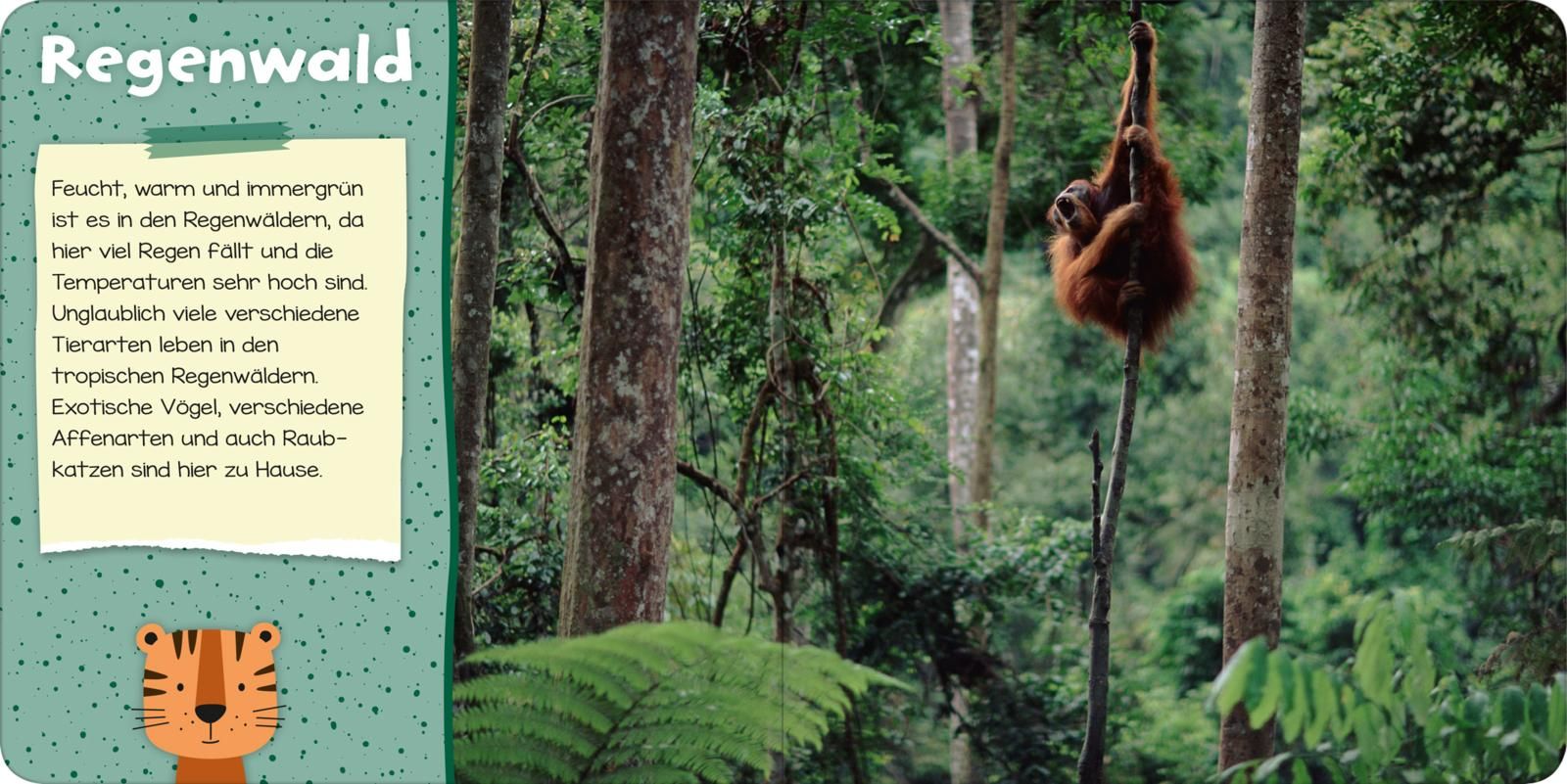 In der Savanne treffen sich die Elefanten und die Zebras. Robben, Walrosse und Eisbären leben in der kalten Welt der Arktis. Und im tropischen Regenwald sind Faultiere, Papageien und Schimpansen zu Hause. In diesem Buch kannst du sie alle entdecken und in ihren natürlichen Lebensräumen beobachten. Wie spielen kleine Tiger miteinander? Und was fressen Giraffen am liebsten? Dieser erste Tieratlas zeigt dir die aufregende Welt der Tiere unserer Erde.